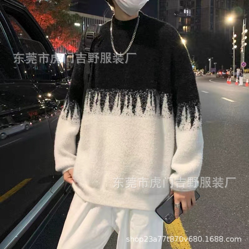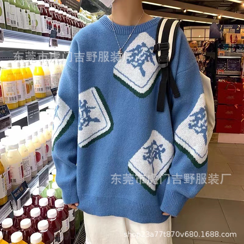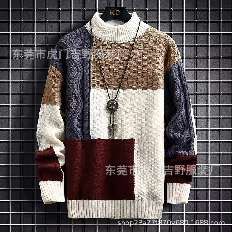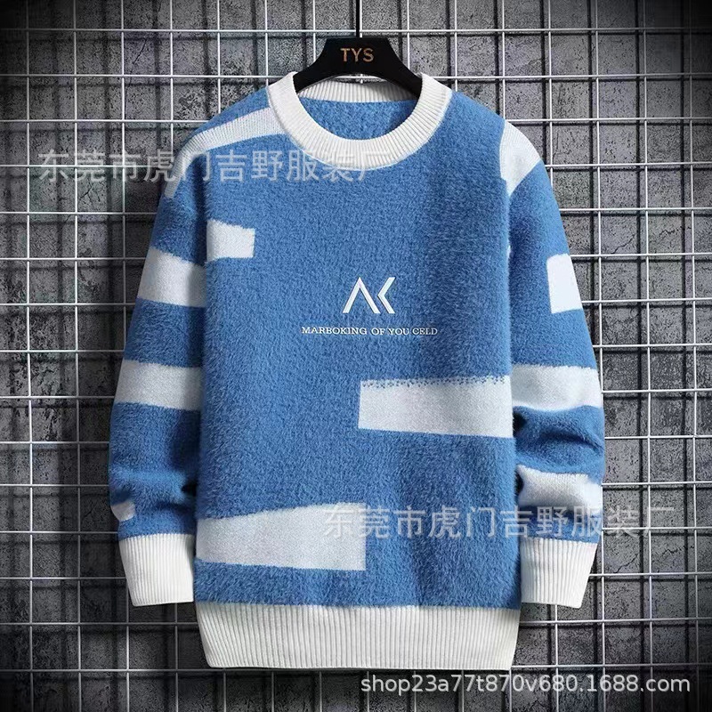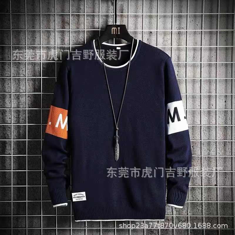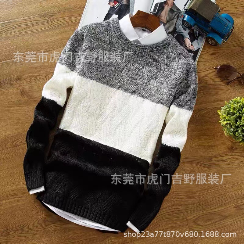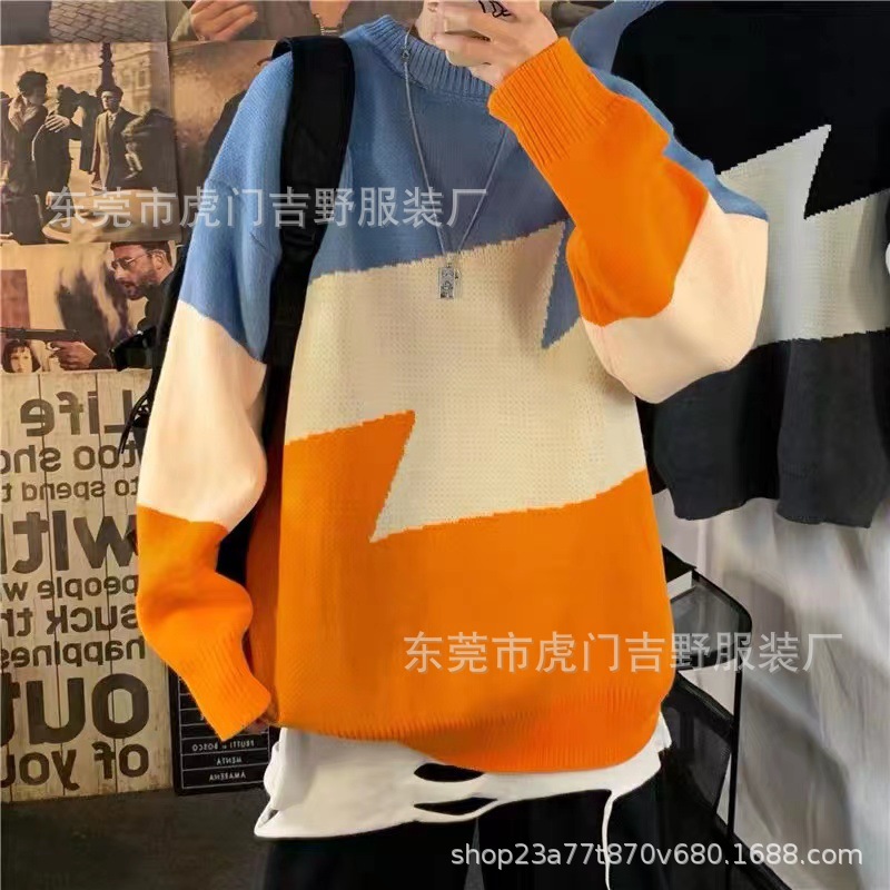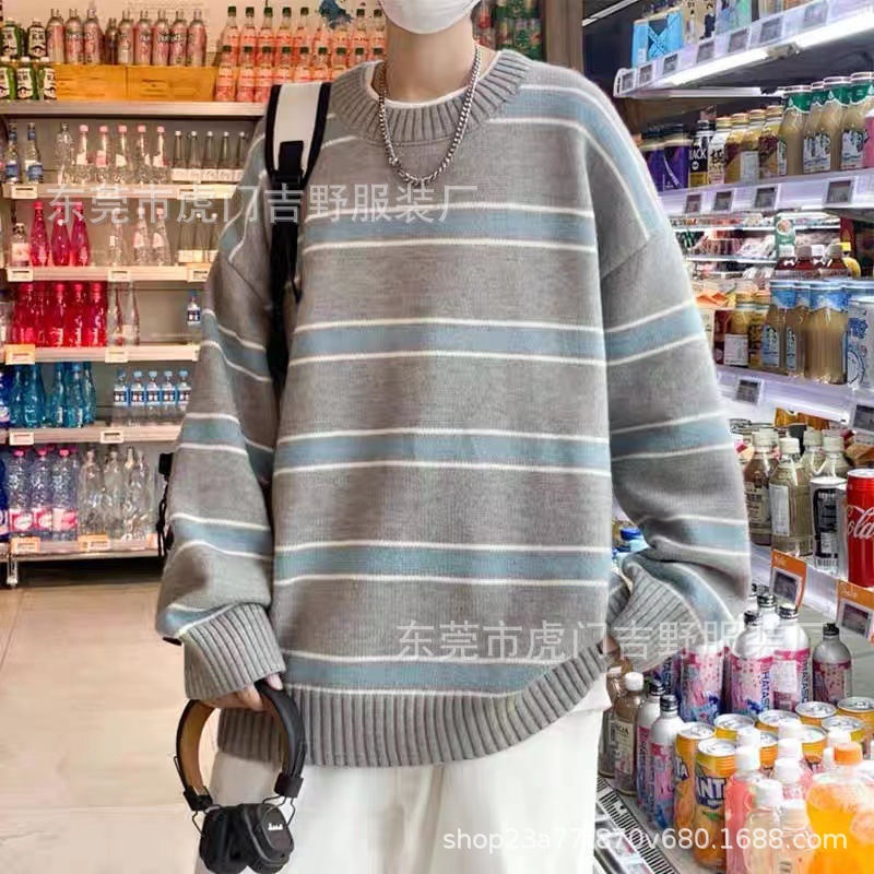 Áo Len Nam Cổ Tròn Mới Phối Màu Rời Áo Len Nam Phong Cách Nhật Bản Áo Len Sọc Màu Tương Phản Bán Buôn Nhiều Loại