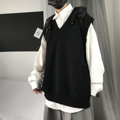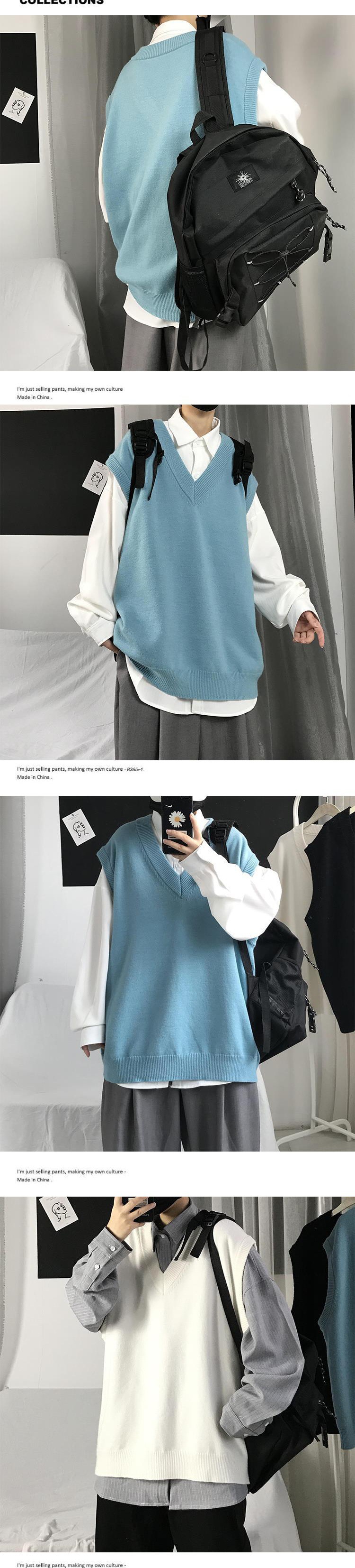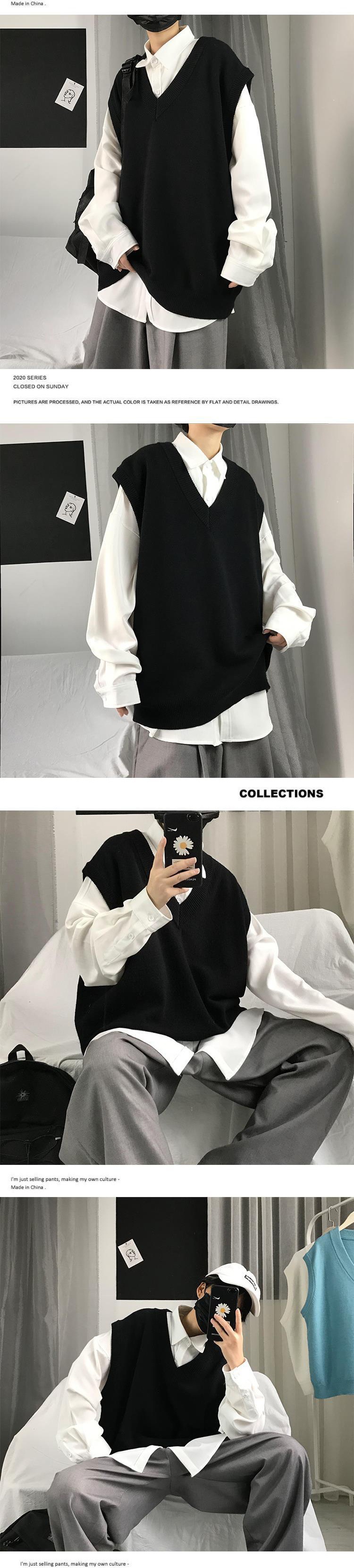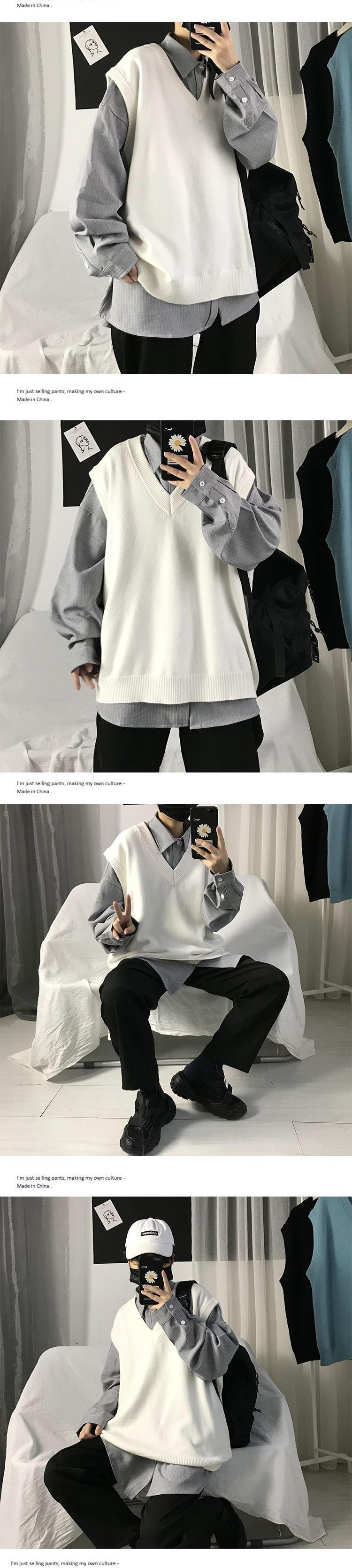 Áo len nam không tay vest vest vest dệt kim vest cổ chữ in ins triều thương hiệu xu hướng cá tính phóng khoáng thu đông áo khoác ngoài