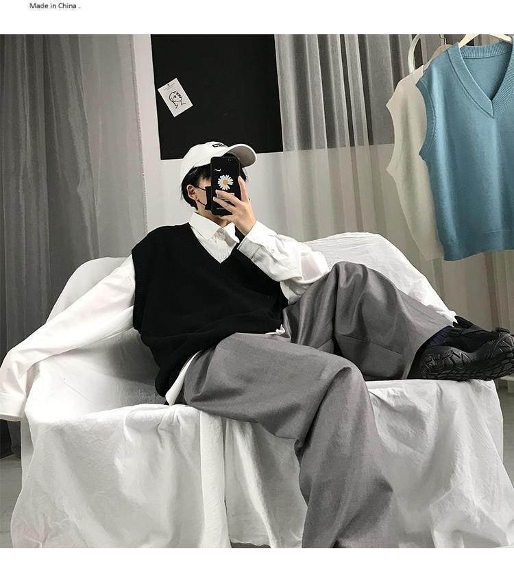 Áo len nam không tay vest vest vest dệt kim vest cổ chữ in ins triều thương hiệu xu hướng cá tính phóng khoáng thu đông áo khoác ngoài