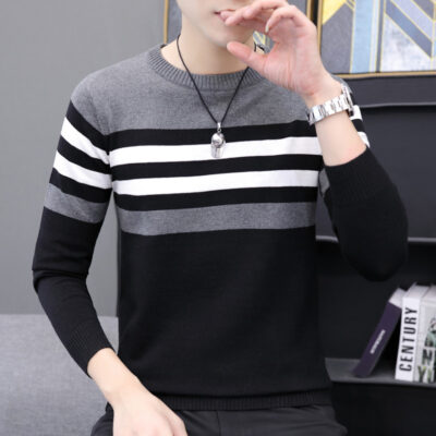 Áo Len Nam Mùa Đông 2022 Nam Mới Sọc Dài Tay Phối Màu Cổ Tròn Áo Len Lông Cừu Dày Dặn Phong Cách Hàn Quốc