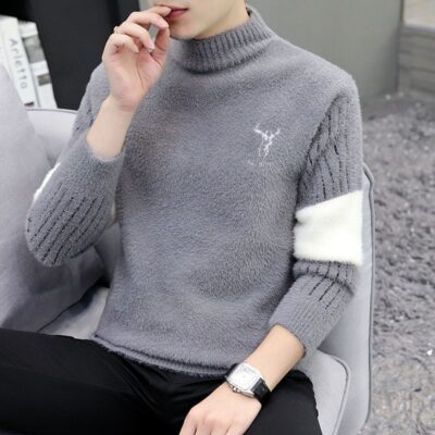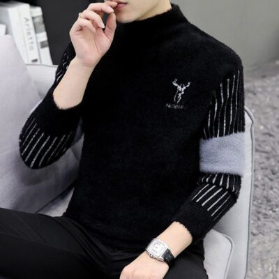 Áo len nam mùa thu đông 2023 mới giả nhung chồn xu hướng trẻ đẹp dày đáy sơ mi dòng quần áo