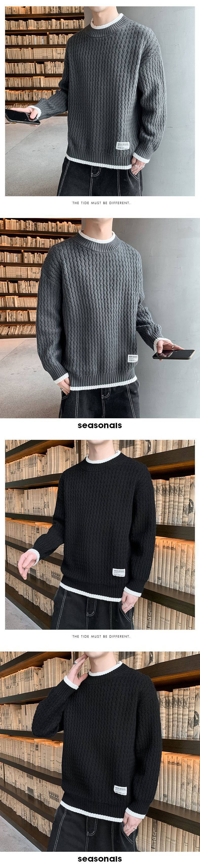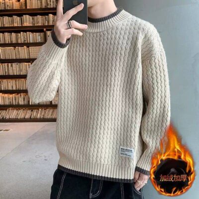 Áo len nam mùa thu đông lông cừu dày mới học sinh trung học và thanh thiếu niên mặc áo len hai mảnh giả ấm áp