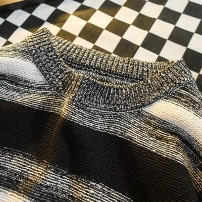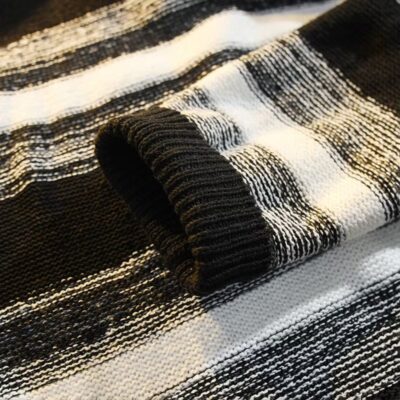Áo len nam mùa thu đông màu tương phản phong cách Hồng Kông Áo len sọc Hàn Quốc hợp thời trang áo len chui đầu rộng phù hợp với mọi lứa tuổi