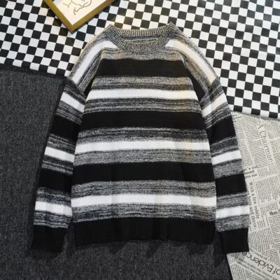 Áo len nam mùa thu đông màu tương phản phong cách Hồng Kông Áo len sọc Hàn Quốc hợp thời trang áo len chui đầu rộng phù hợp với mọi lứa tuổi