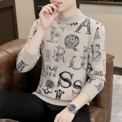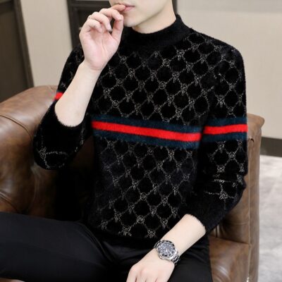 Áo len nam nửa cổ lọ hợp thời trang thương hiệu nhung chồn thu đông Châu Âu hàng đầu hổ dạ dày dệt kim ấm đáy áo sơ mi