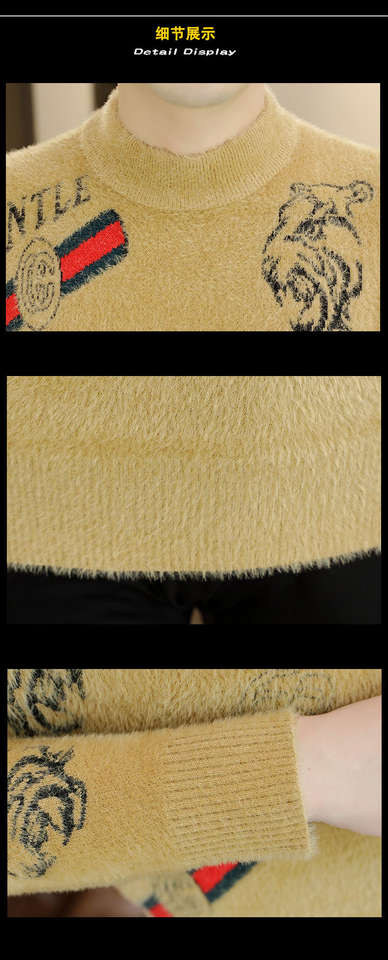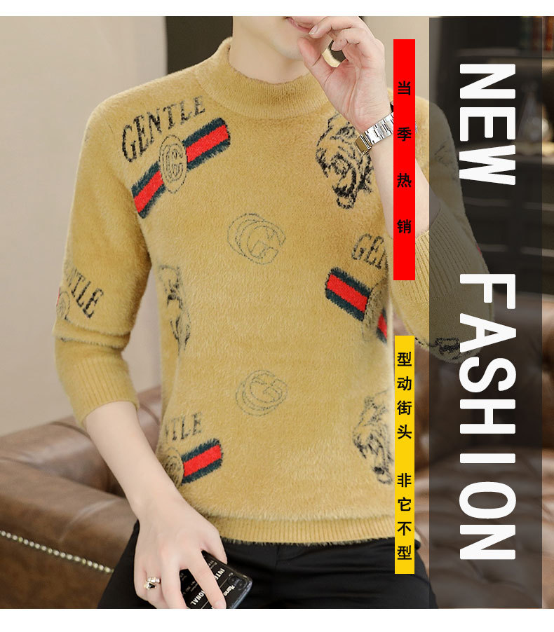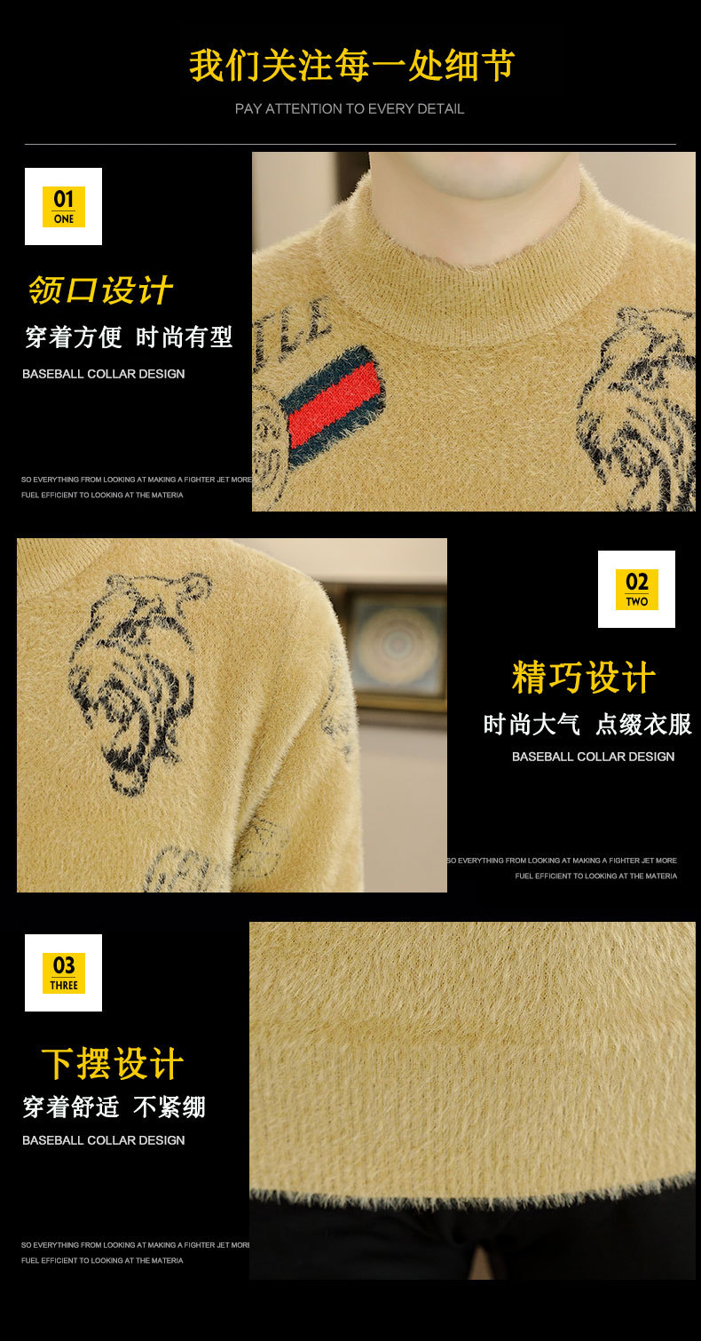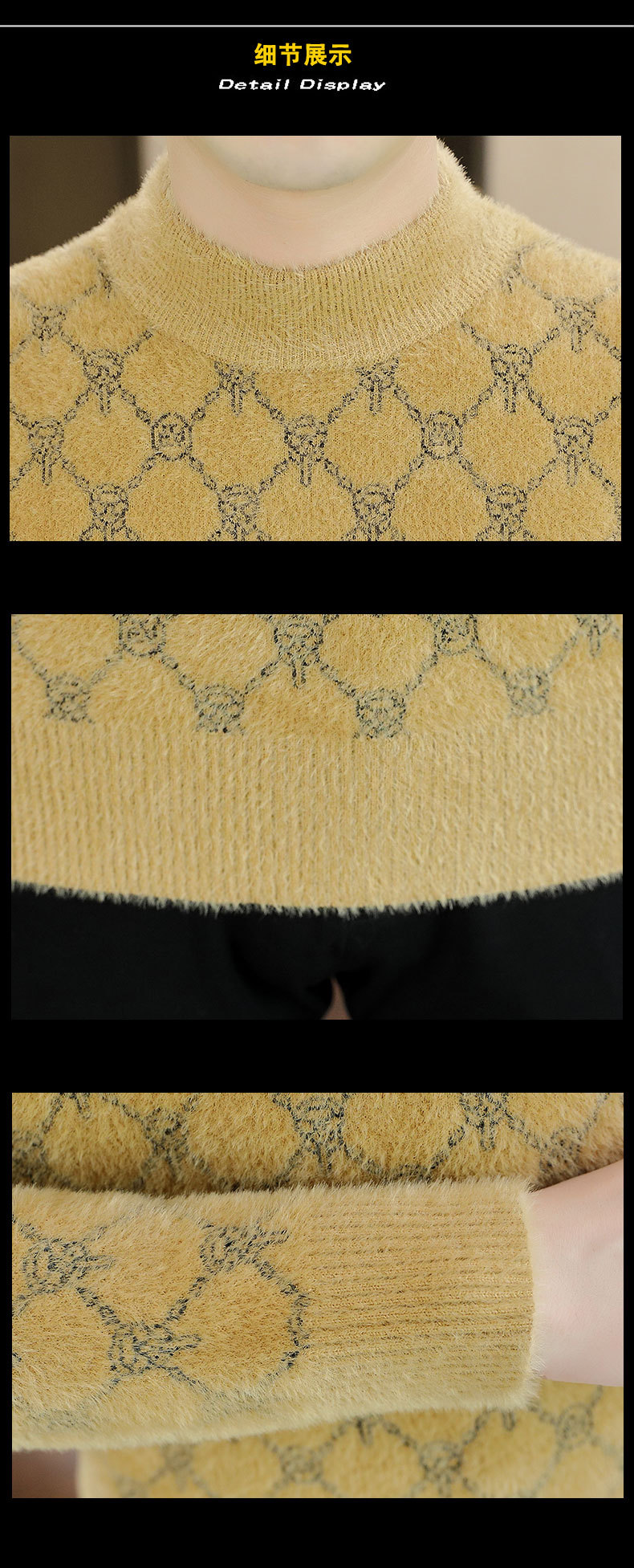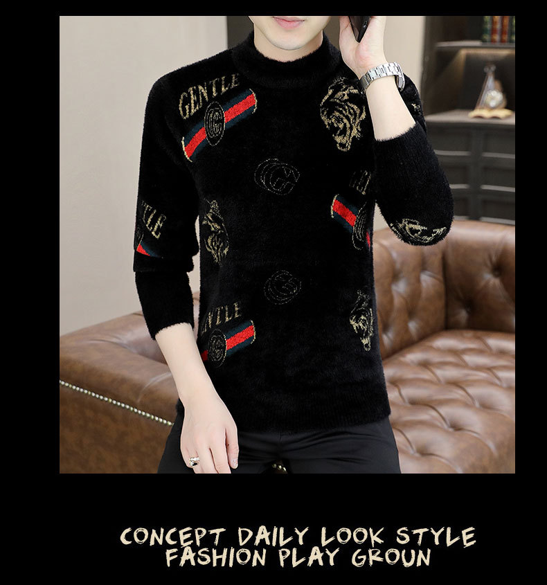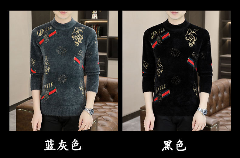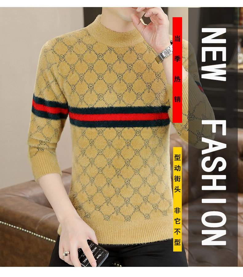 Áo len nam nửa cổ lọ hợp thời trang thương hiệu nhung chồn thu đông Châu Âu hàng đầu hổ dạ dày dệt kim ấm đáy áo sơ mi