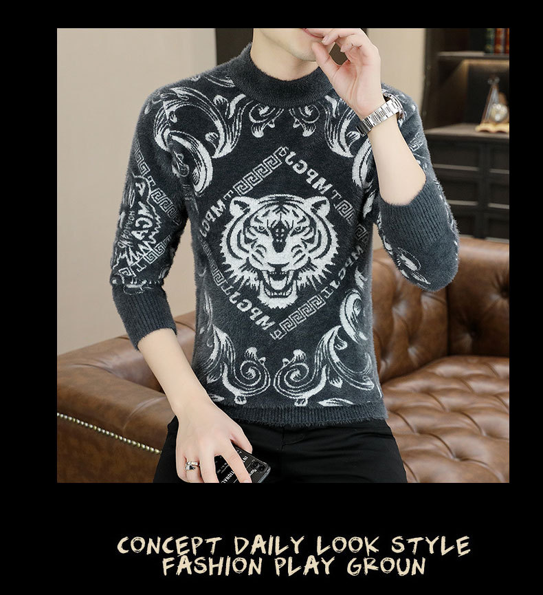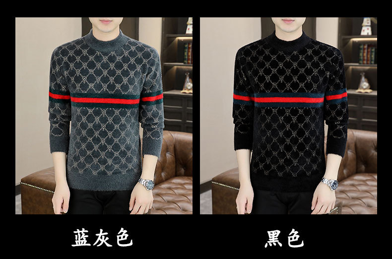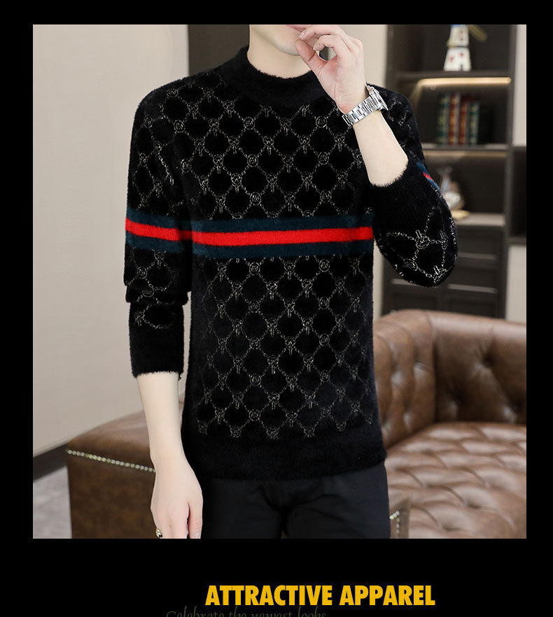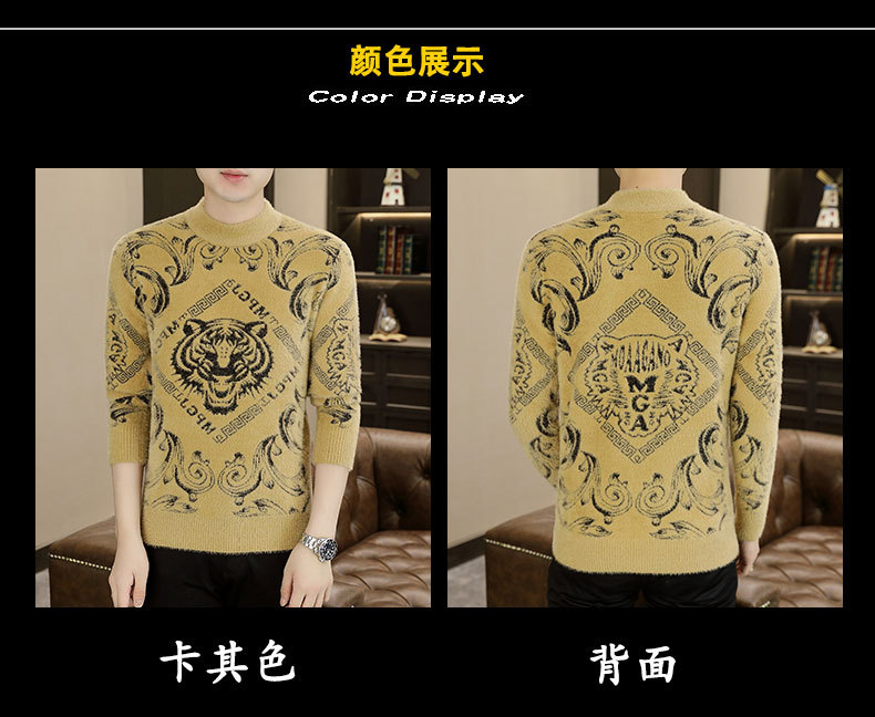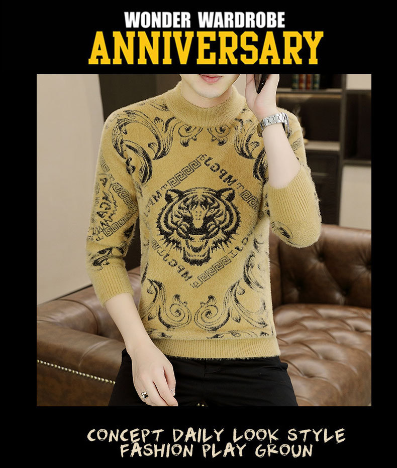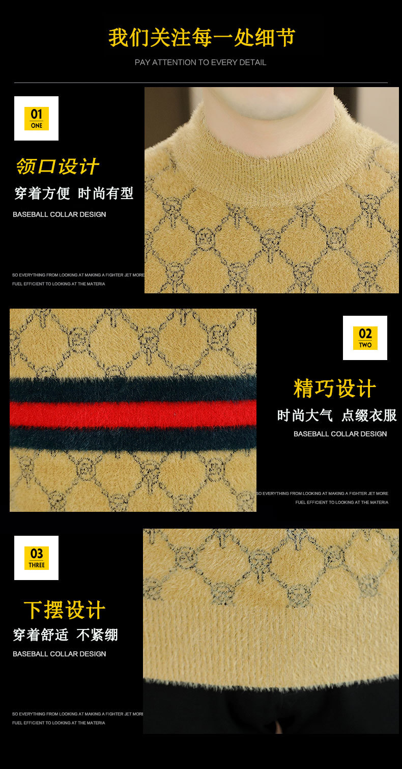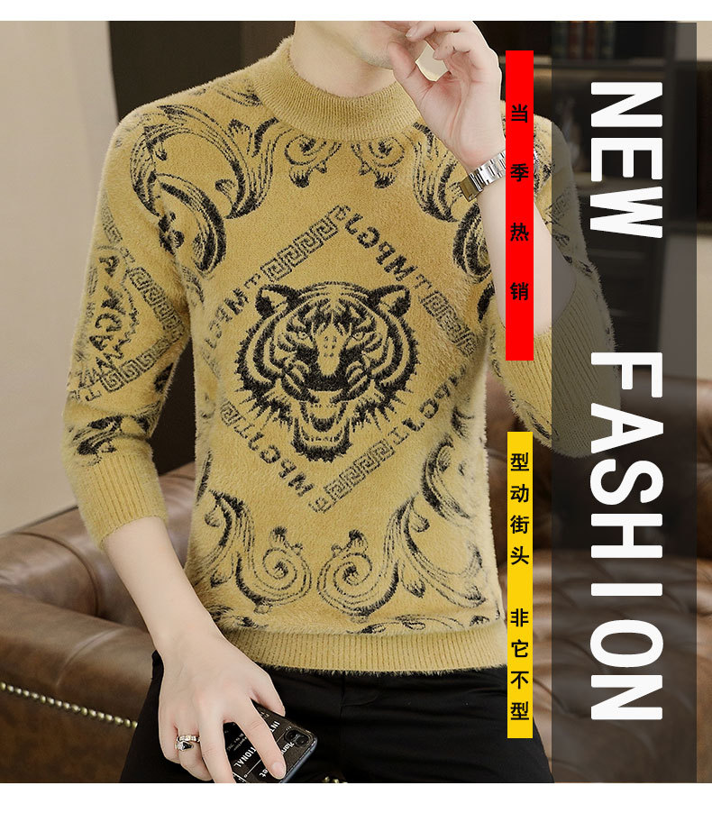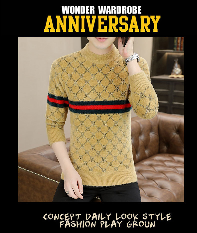 Áo len nam nửa cổ lọ hợp thời trang thương hiệu nhung chồn thu đông Châu Âu hàng đầu hổ dạ dày dệt kim ấm đáy áo sơ mi