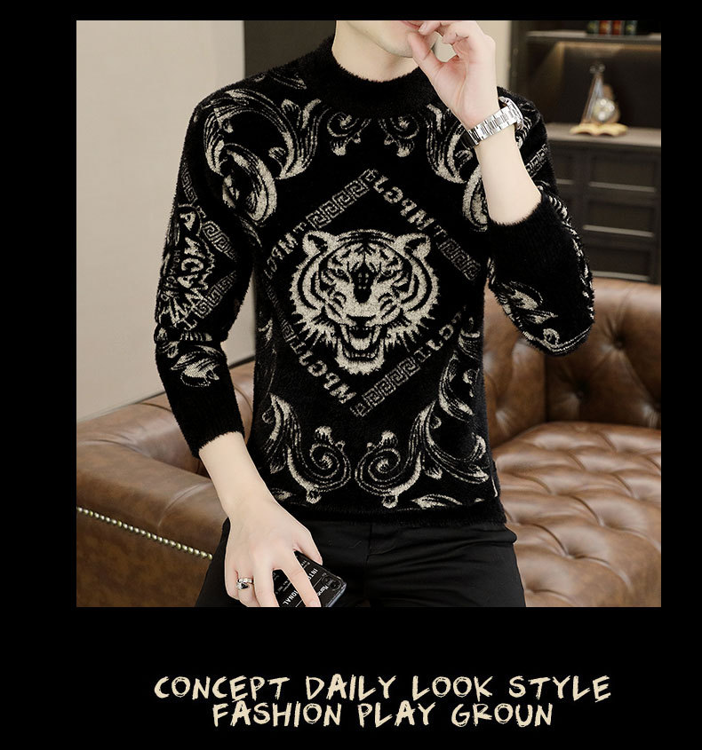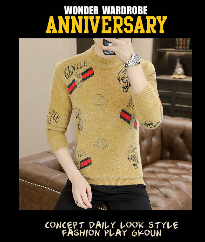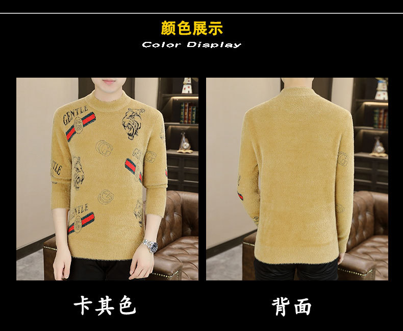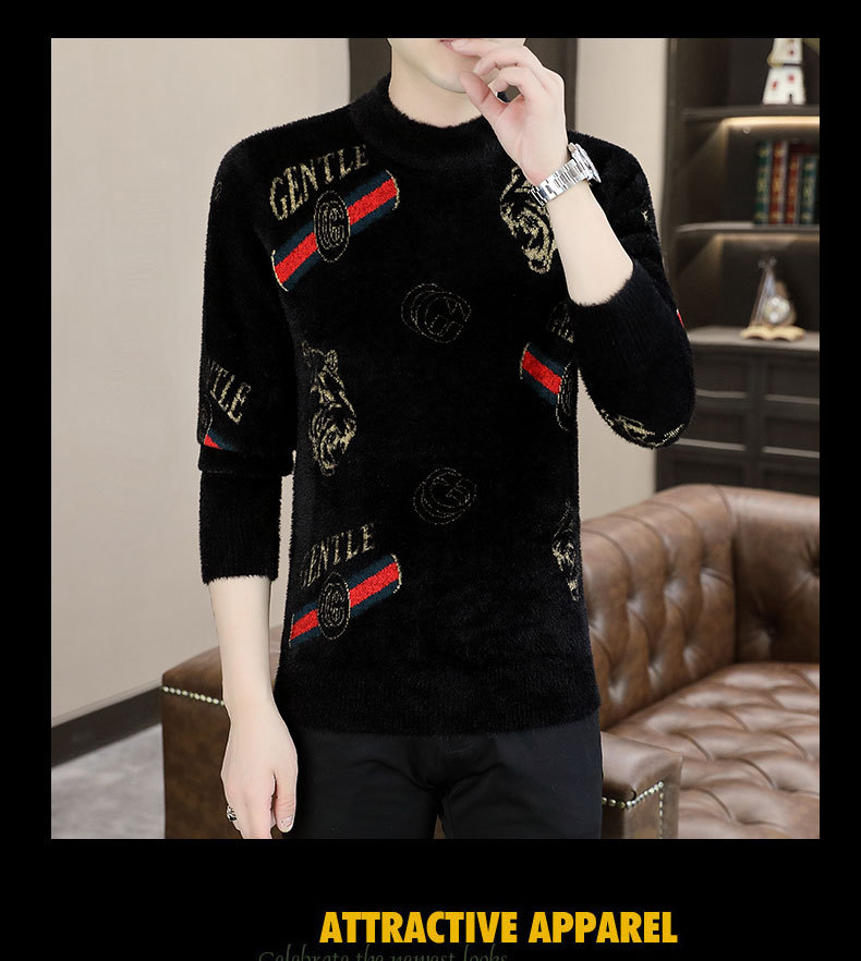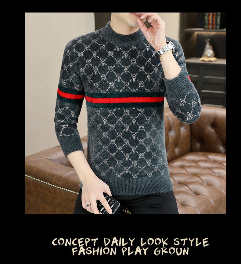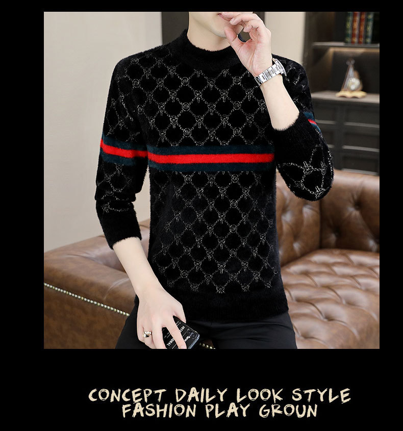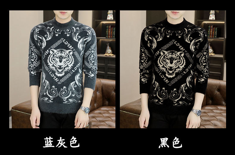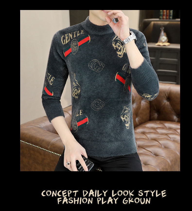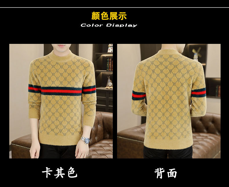 Áo len nam nửa cổ lọ hợp thời trang thương hiệu nhung chồn thu đông Châu Âu hàng đầu hổ dạ dày dệt kim ấm đáy áo sơ mi