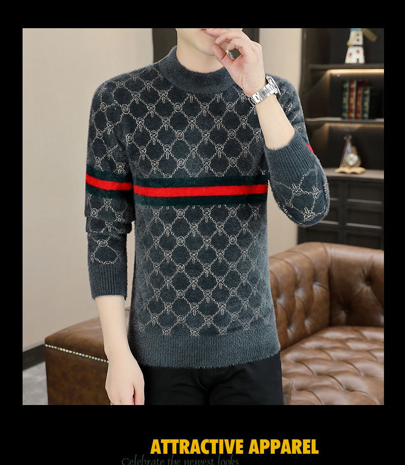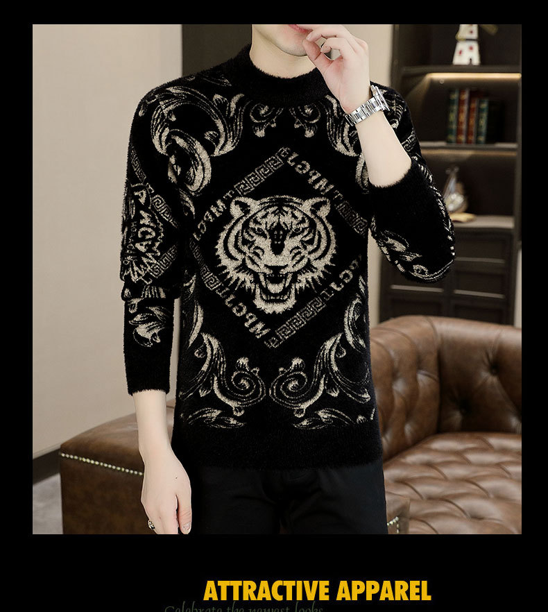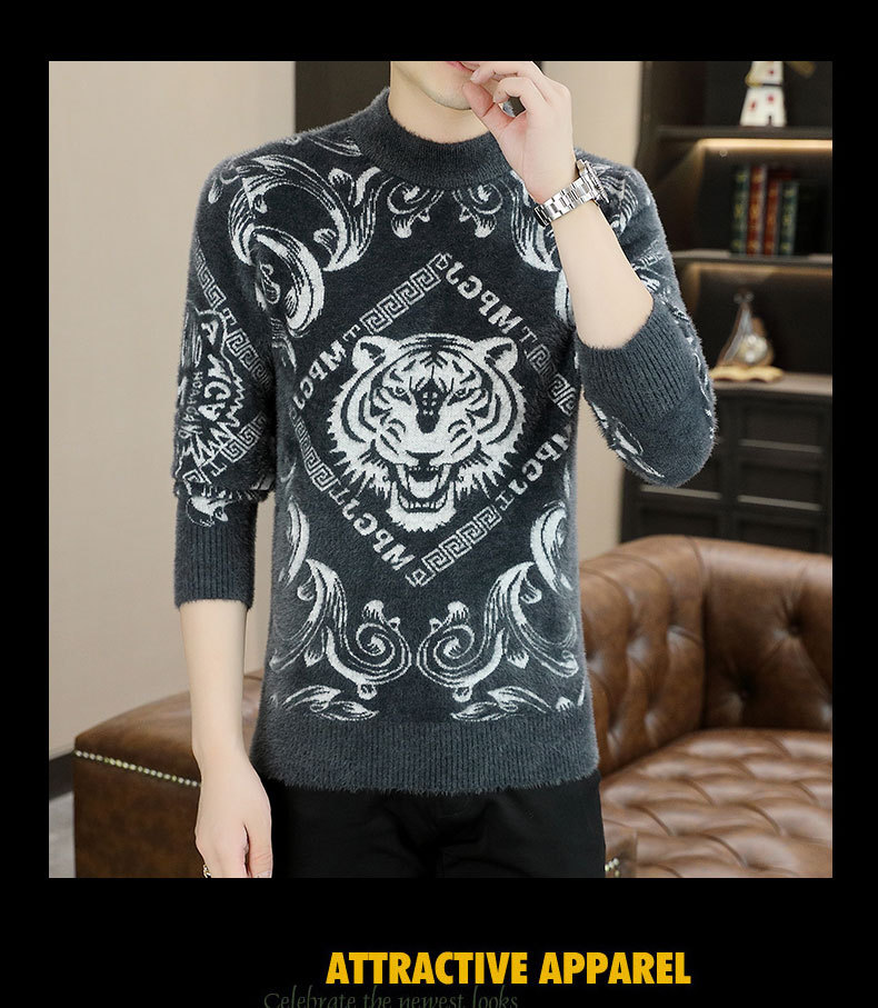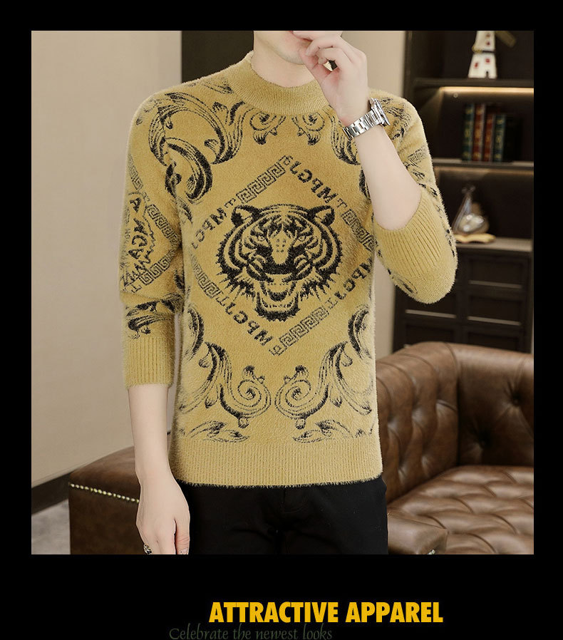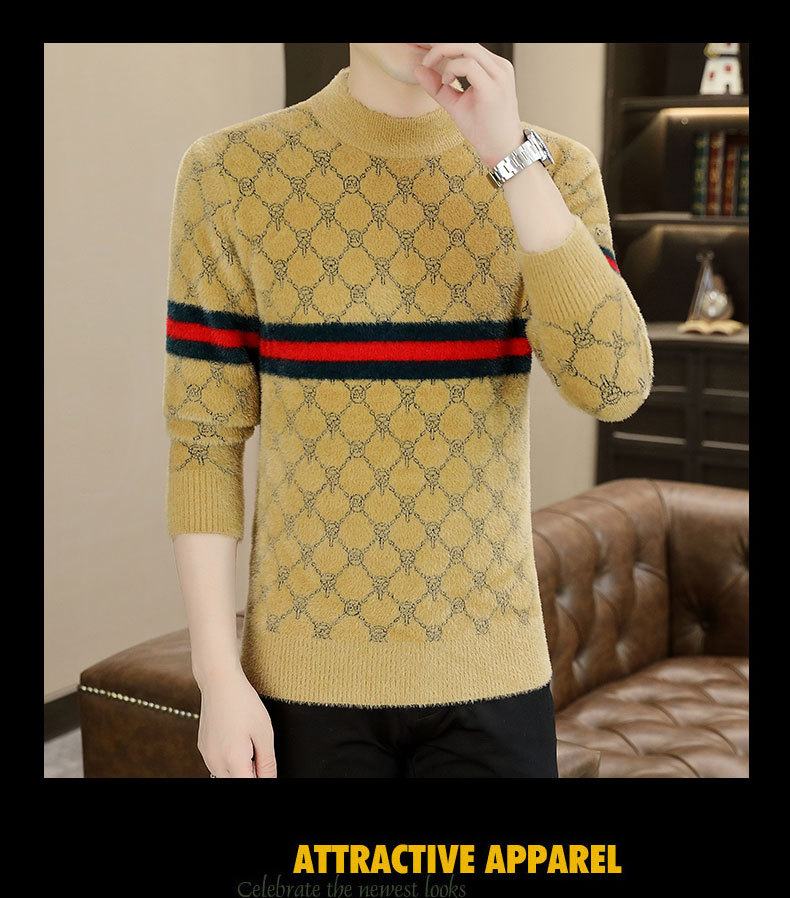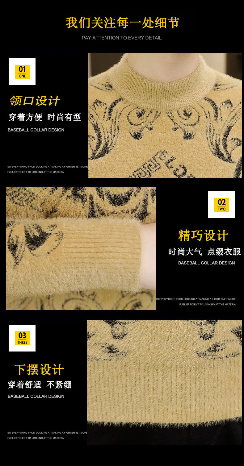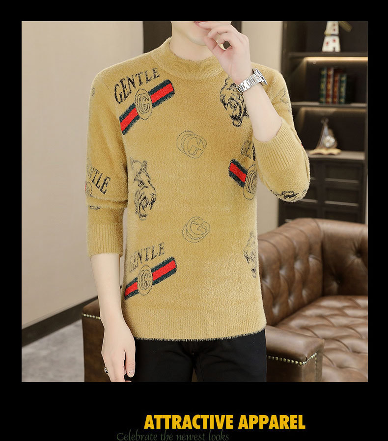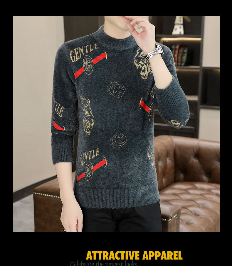 Áo len nam nửa cổ lọ hợp thời trang thương hiệu nhung chồn thu đông Châu Âu hàng đầu hổ dạ dày dệt kim ấm đáy áo sơ mi