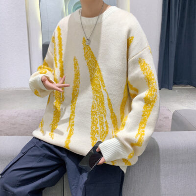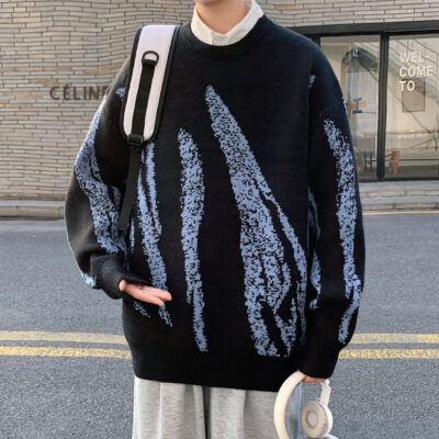 Áo len nam Quần áo mùa đông Mới giản dị Xu hướng màu sắc tương phản Thân thiện với làn da Áo len dệt kim cổ tròn dáng rộng cho nam Quần áo nam
