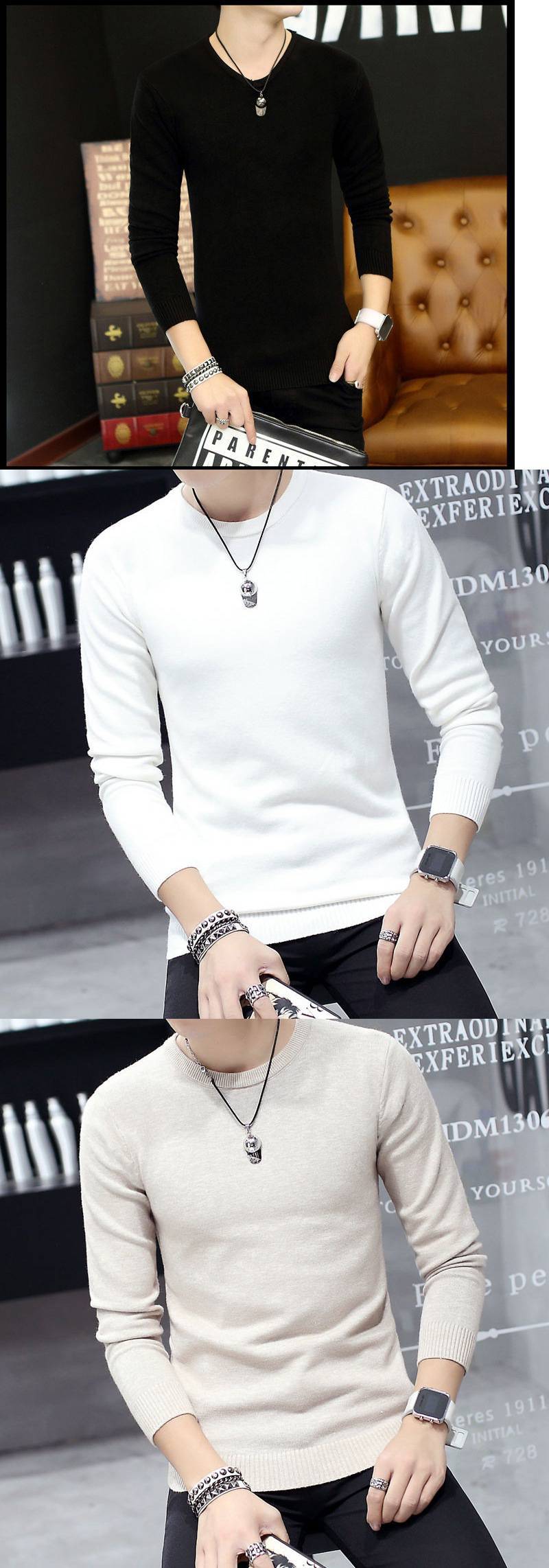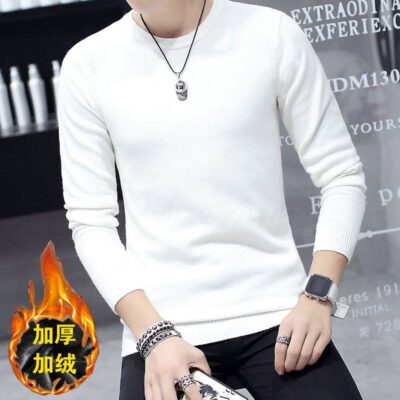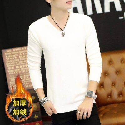 Áo len nam thu đông cổ chữ V mỏng phiên bản Hàn Quốc áo len mỏng đáy mỏng màu trắng học sinh cộng với áo len cổ tròn nhung