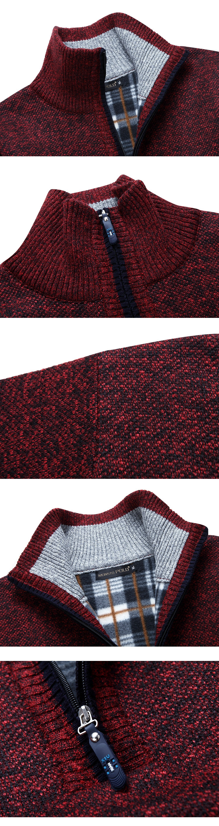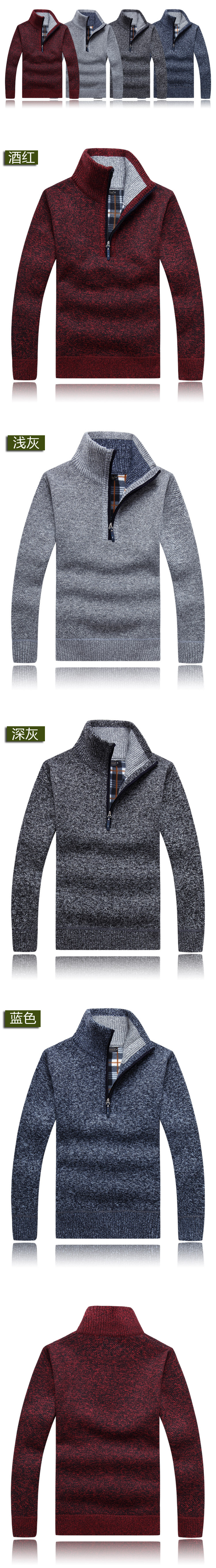 Áo len ngoại thương nam mùa thu đông cổ đứng cộng với lớp nhung dày Áo len dệt kim dáng rộng cổ cao dây kéo sơ mi chạm đáy