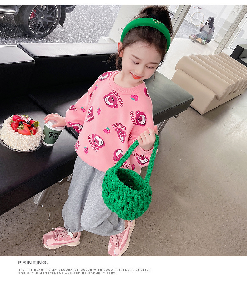 Áo len nữ phong cách xuân thu 2023 mới phong cách nước ngoài bé gái dễ thương áo dài tay mùa thu đông trẻ em lưới mùa thu màu đỏ xu hướng