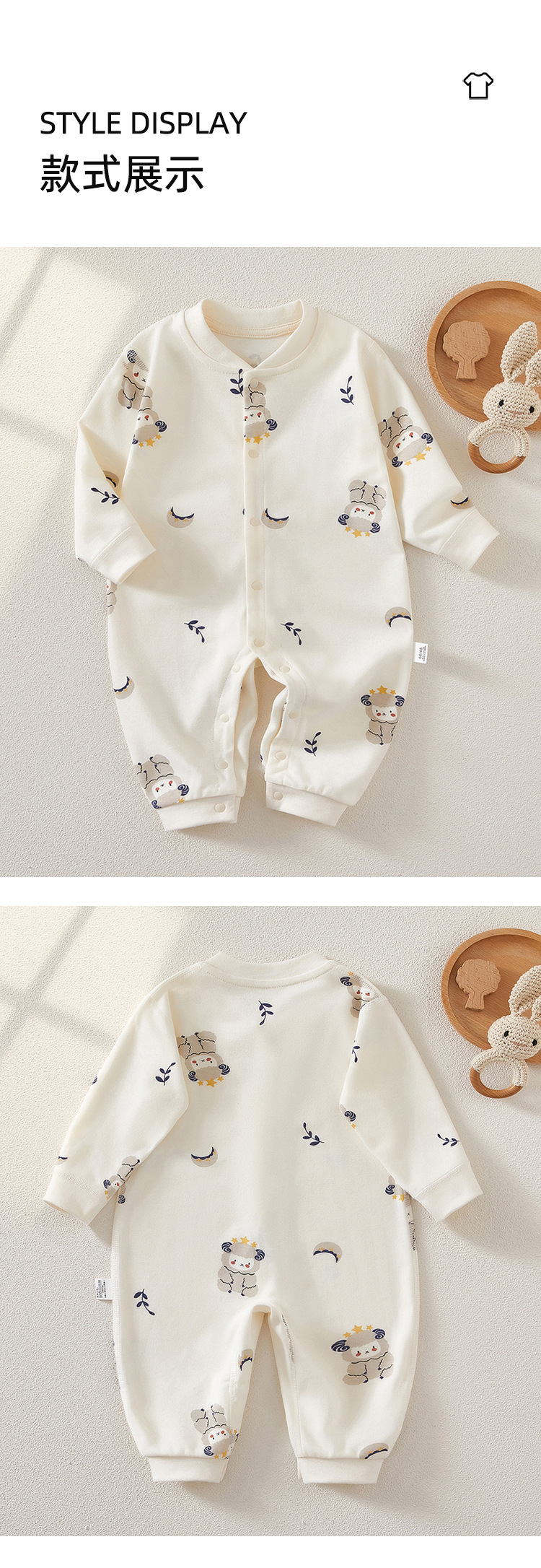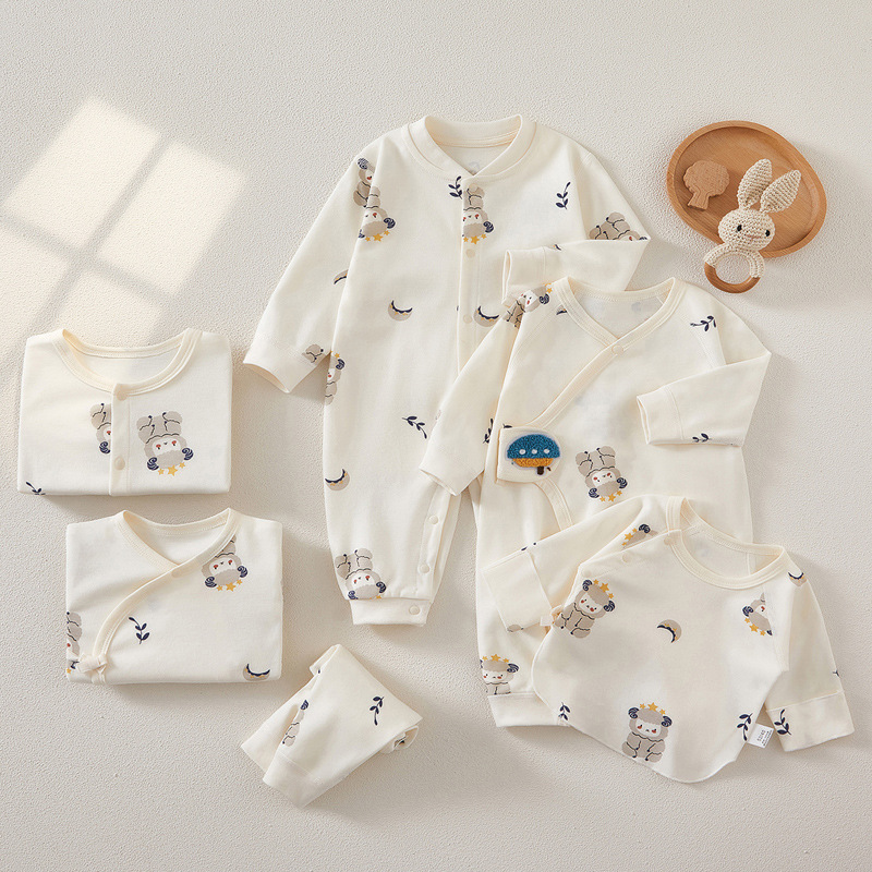Áo liền quần cho bé mùa xuân và mùa thu cotton nguyên chất không xương tu sĩ quần áo bé sơ sinh áo liền quần dài tay bò quần áo quần áo sơ sinh