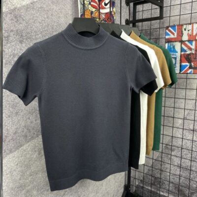 Áo mỏng 2023 mùa xuân và mùa thu mới áo len nửa cổ lọ phù hợp với tất cả các loại áo len dệt kim nam ngắn tay dày hợp thời trang bán buôn