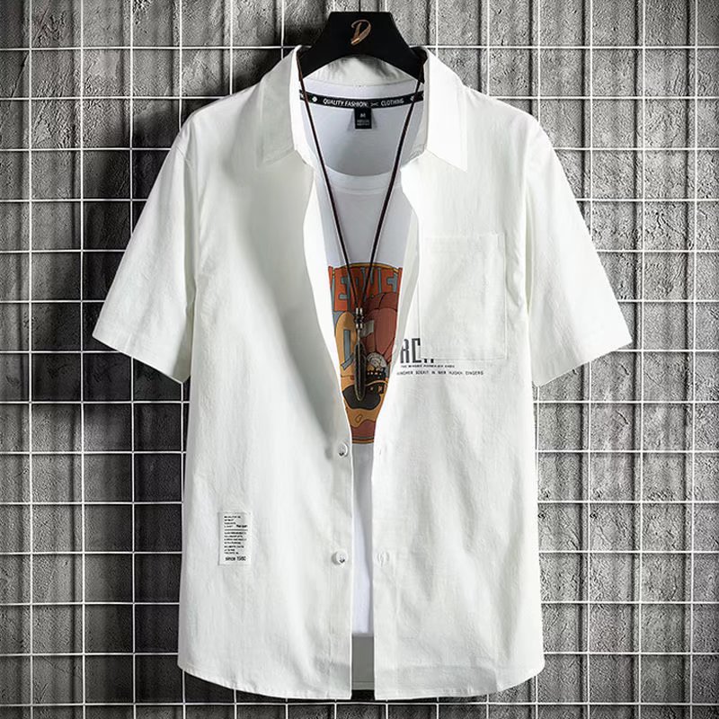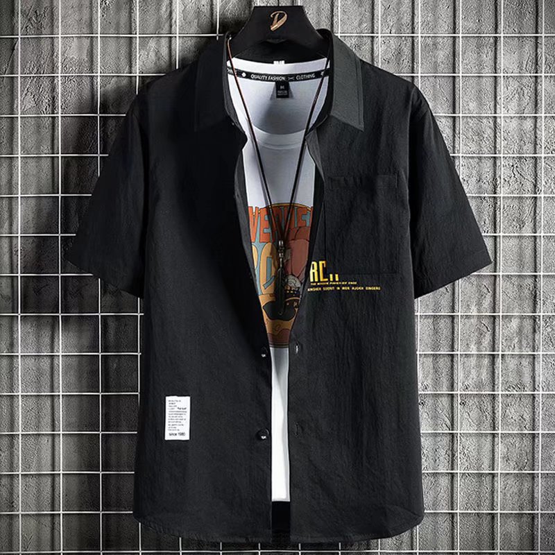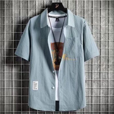 Áo sơ mi áo khoác nam mùa hè mỏng thương hiệu thời trang dụng cụ năm điểm ngắn tay quần áo rộng rãi chống nắng giản dị áo sơ mi nam