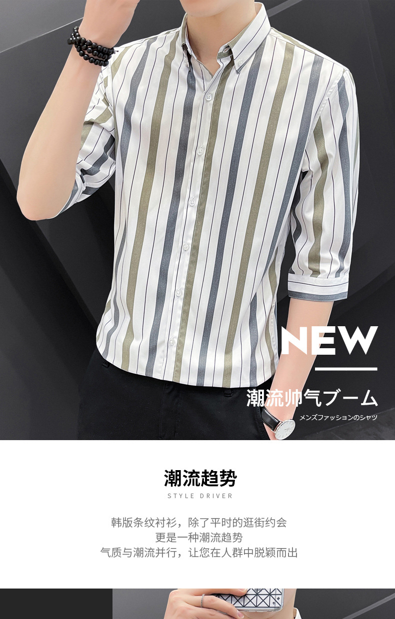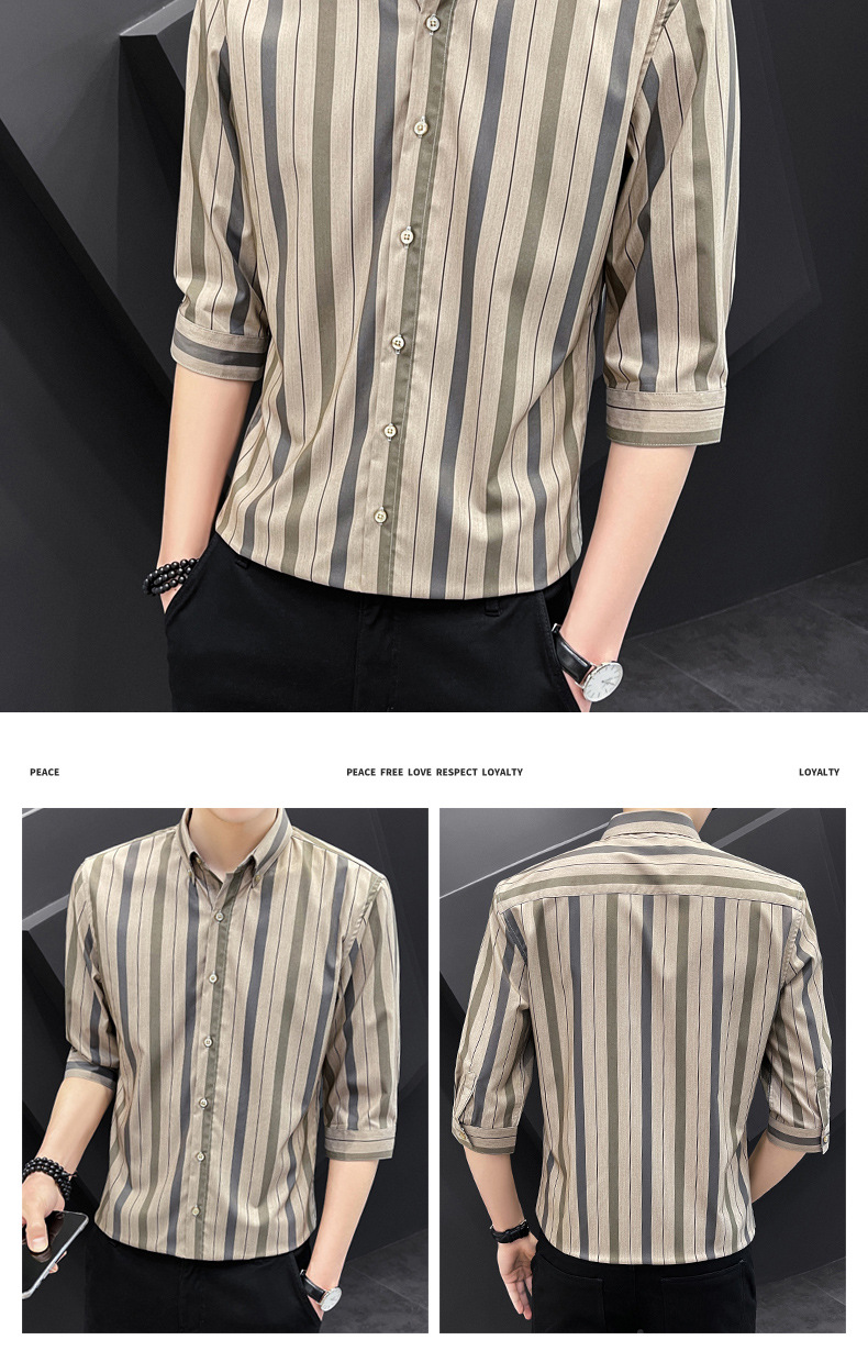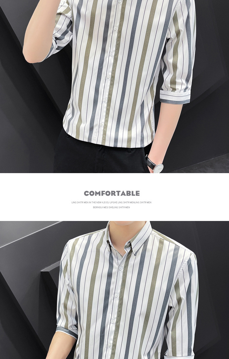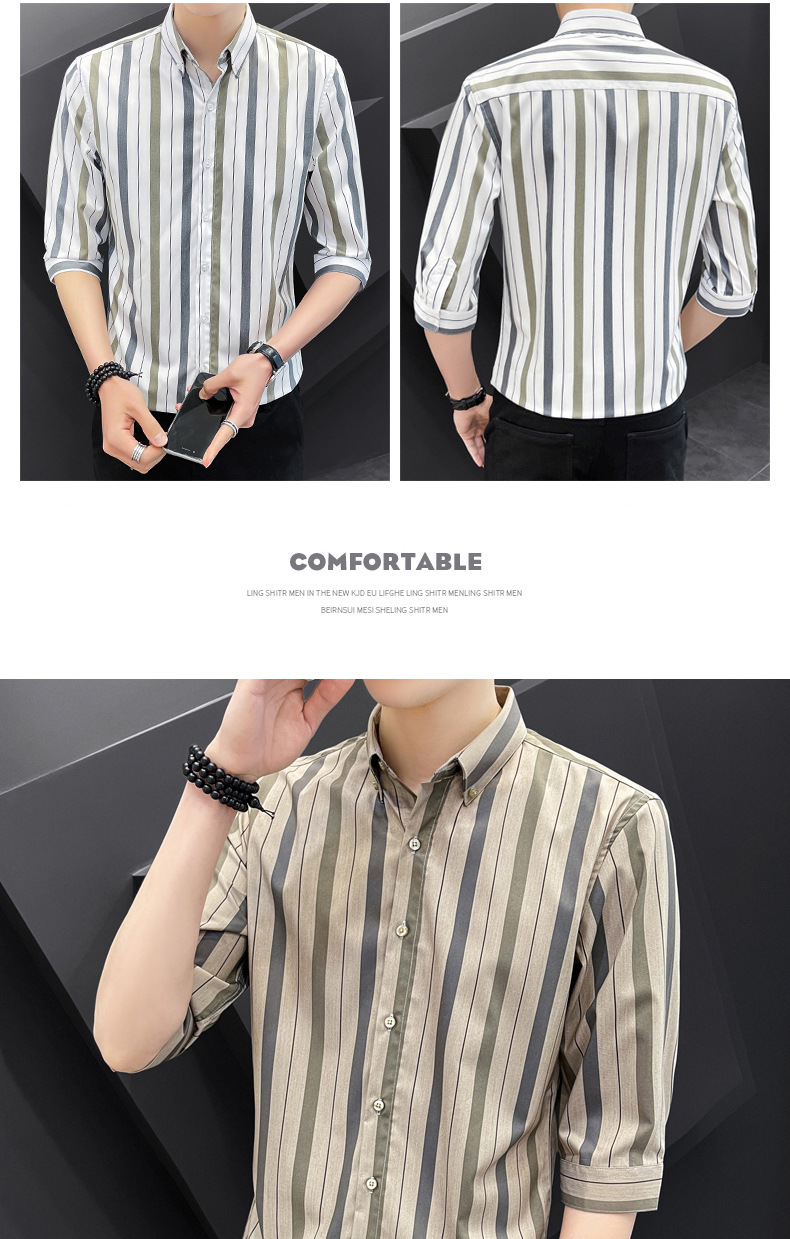 Áo sơ mi ba tay ba phần tư lụa băng mùa hè mới sọc chất lượng cao ngắn tay áo sơ mi nam nửa tay giản dị hợp thời trang