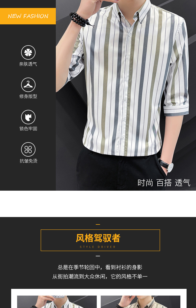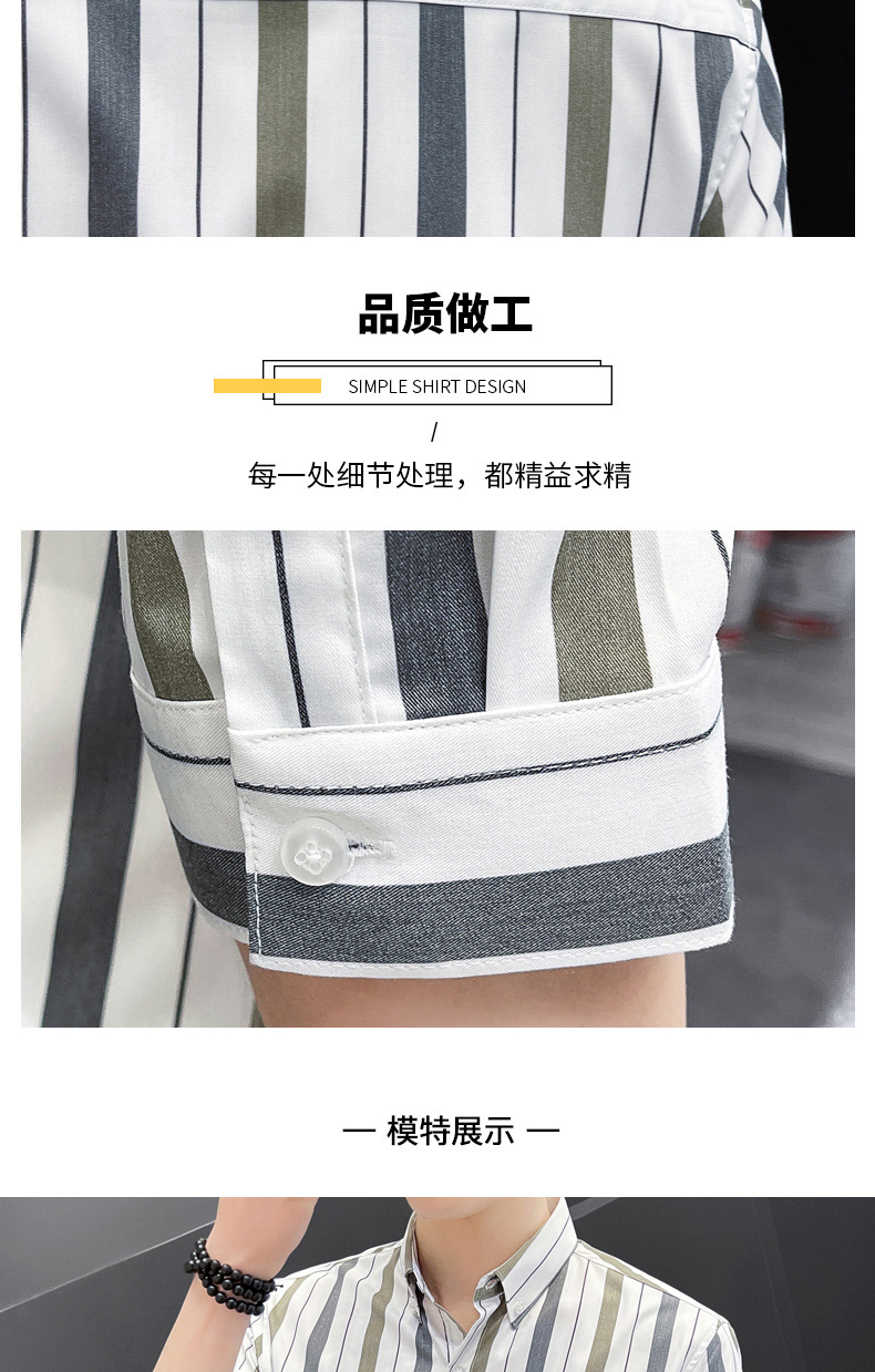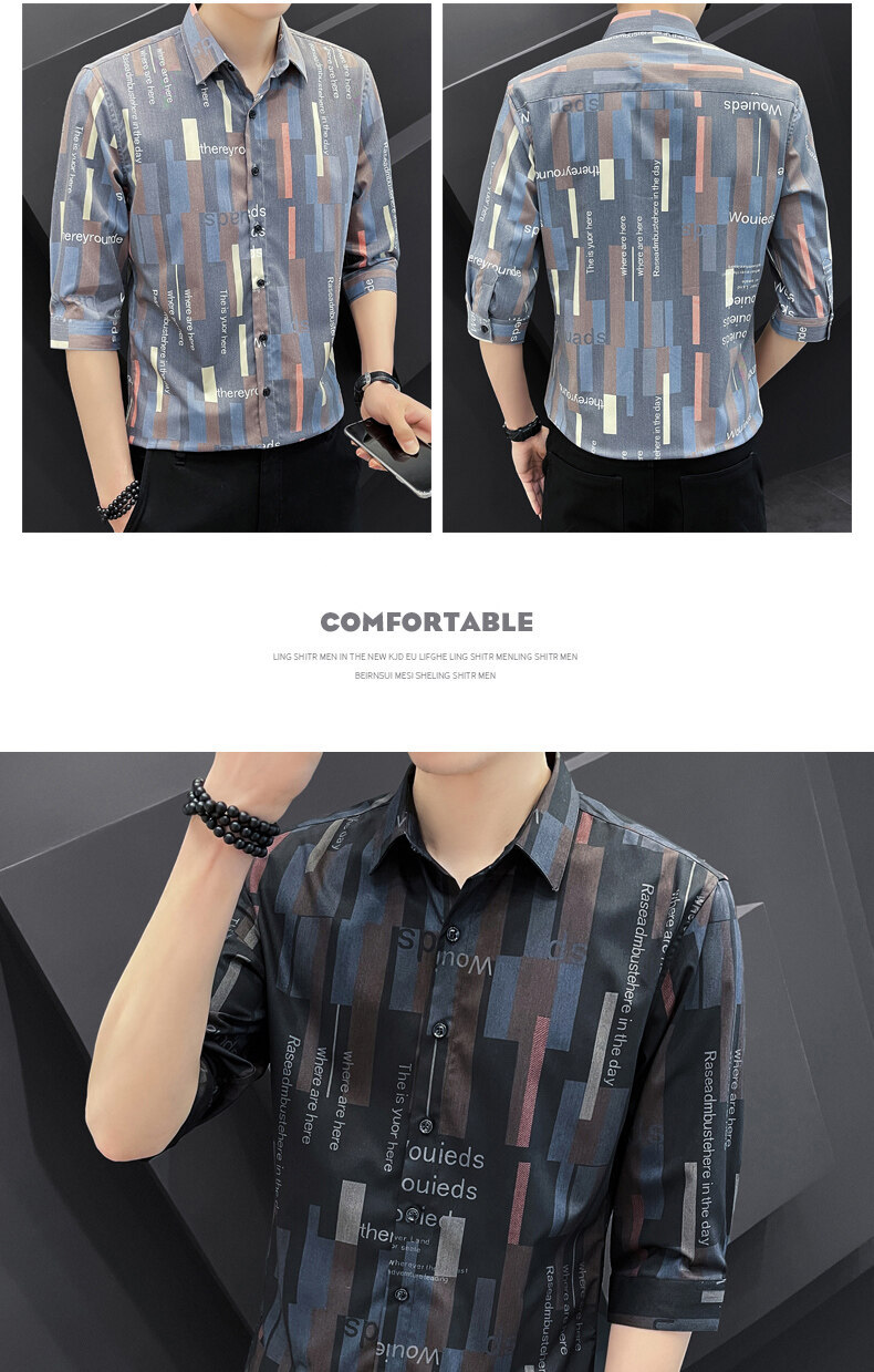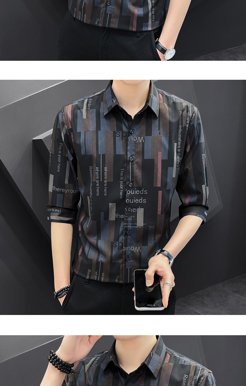 Áo sơ mi ba tay ba phần tư lụa băng mùa hè mới sọc chất lượng cao ngắn tay áo sơ mi nam nửa tay giản dị hợp thời trang
