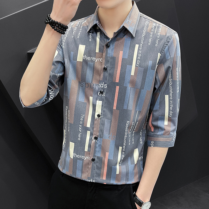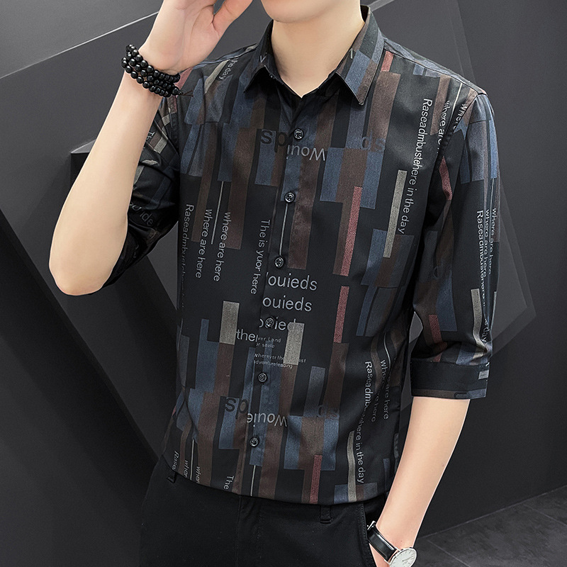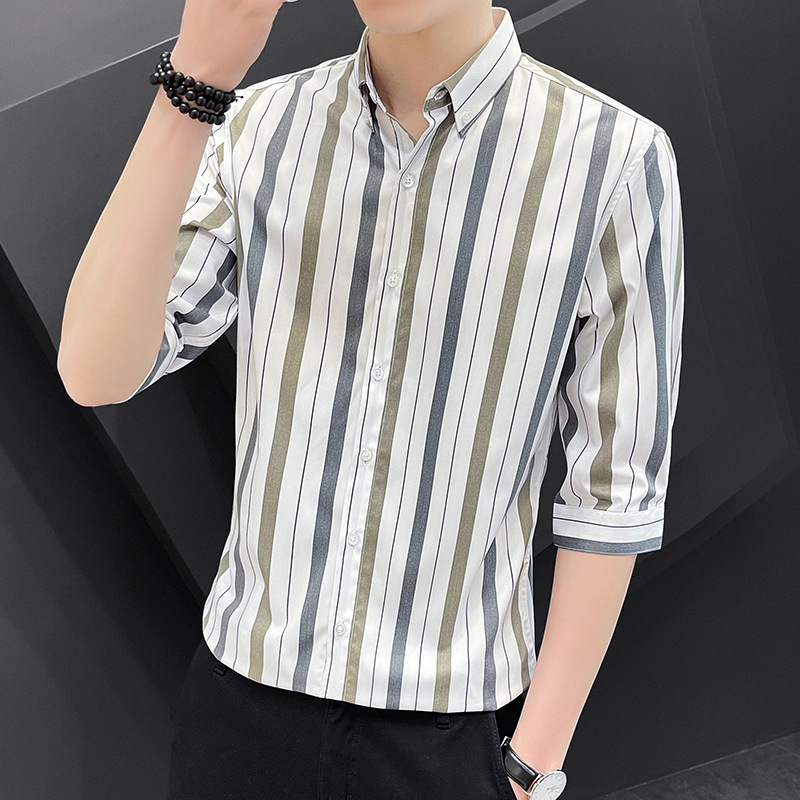 Áo sơ mi ba tay ba phần tư lụa băng mùa hè mới sọc chất lượng cao ngắn tay áo sơ mi nam nửa tay giản dị hợp thời trang