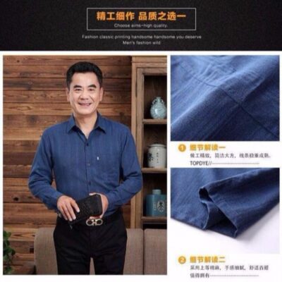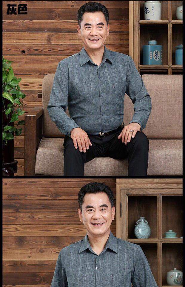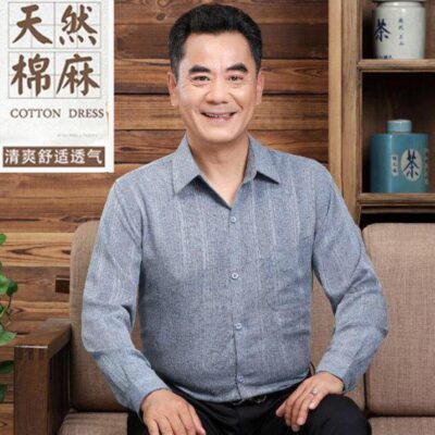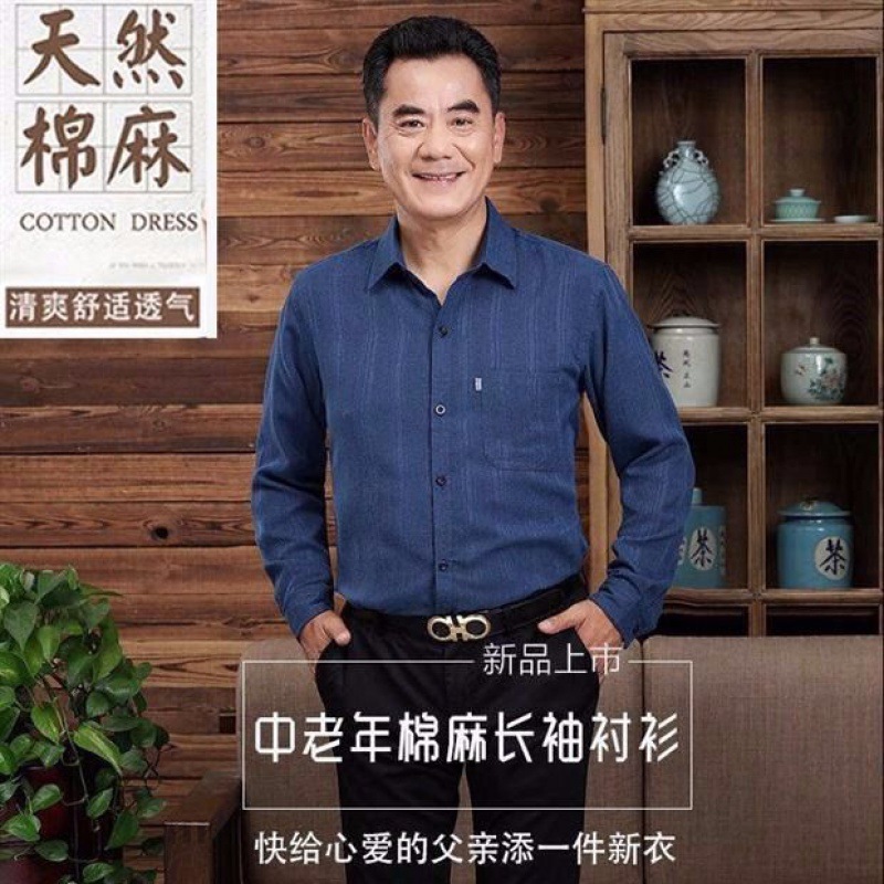 Áo sơ mi bố mùa xuân hè trung niên và cao tuổi cotton lanh dài tay nam mỏng rộng 50-60-70 tuổi mùa áo sơ mi không ủi