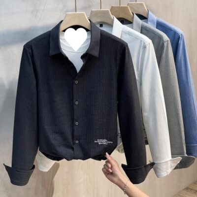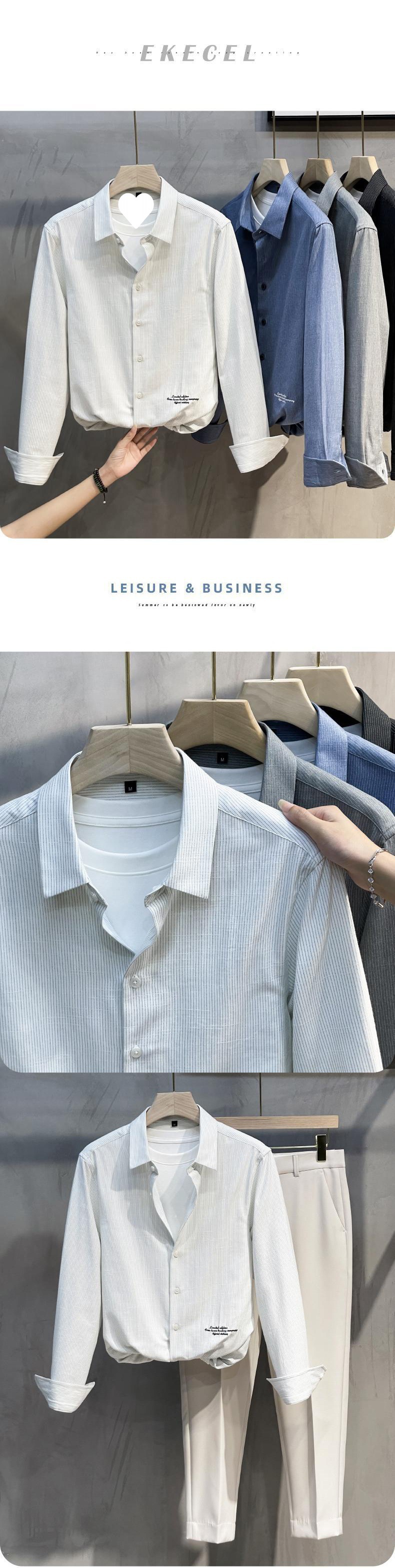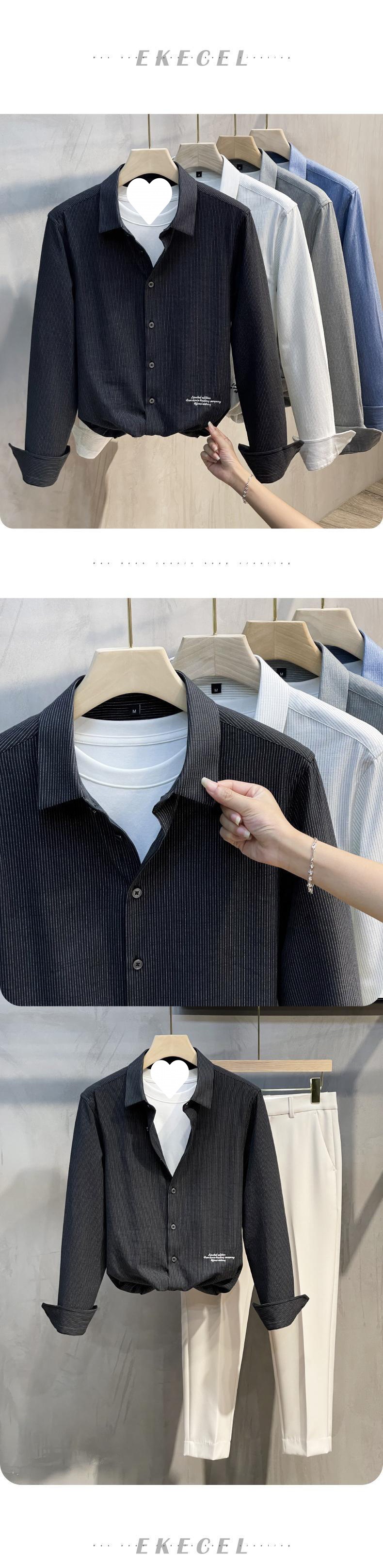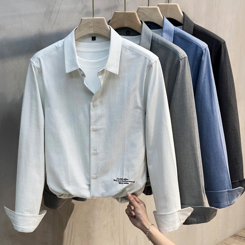 Áo sơ mi cao cấp cảm giác áo khoác nam dài tay xu hướng sọc Nhật Bản quần áo hàng đầu nam giản dị áo sơ mi nam mẫu xuân thu