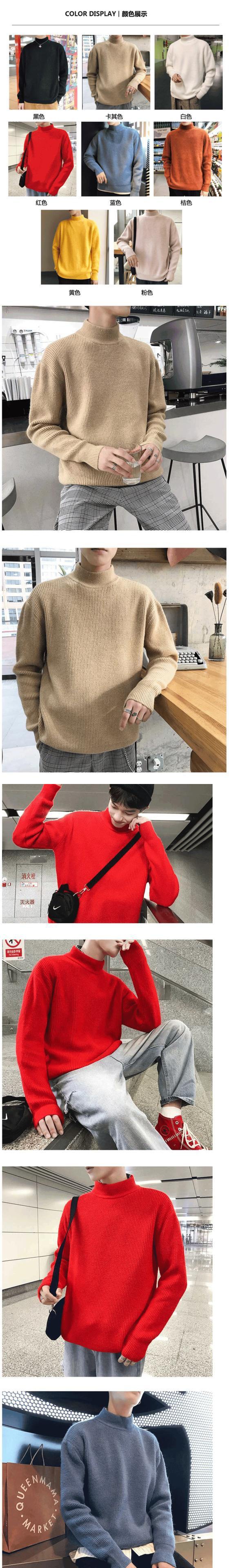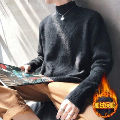 Áo sơ mi có đáy ấm áo len nam mùa thu đông phong cách Hồng Kông xu hướng mới dày hơn cộng với áo len dệt kim cổ cao nửa đầu hợp thời trang