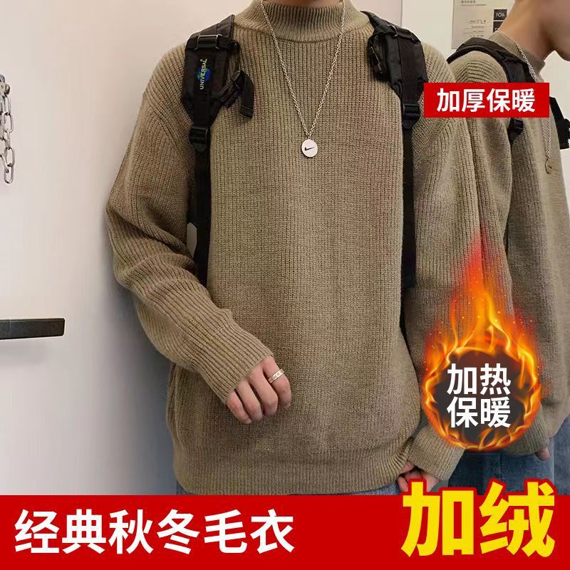 Áo sơ mi có đáy ấm áo len nam mùa thu đông phong cách Hồng Kông xu hướng mới dày hơn cộng với áo len dệt kim cổ cao nửa đầu hợp thời trang