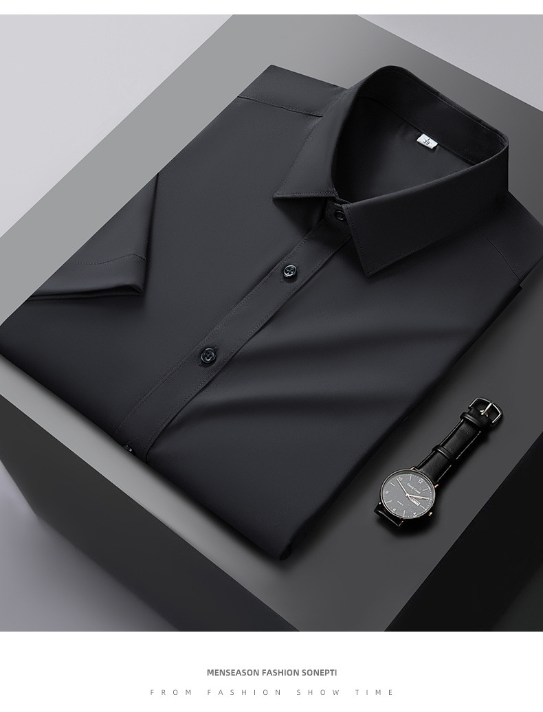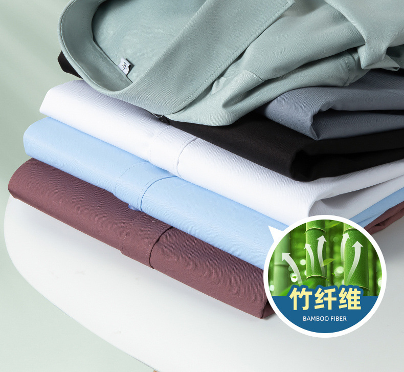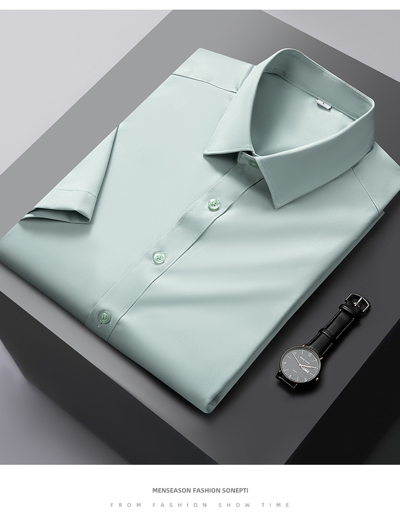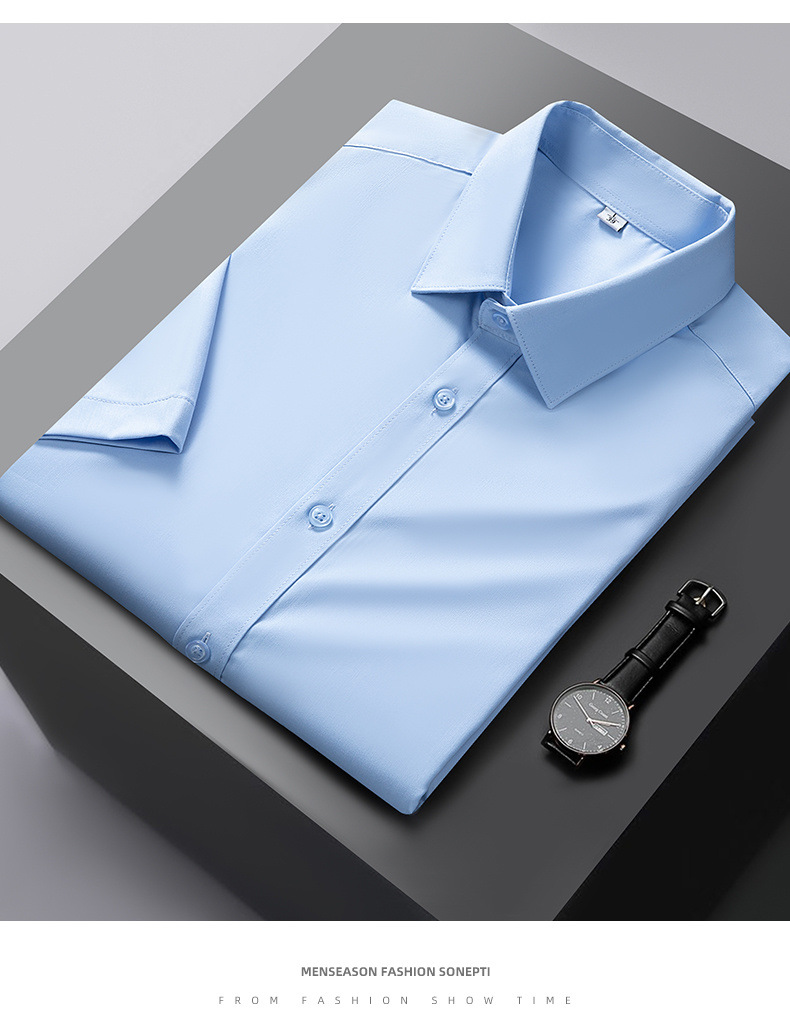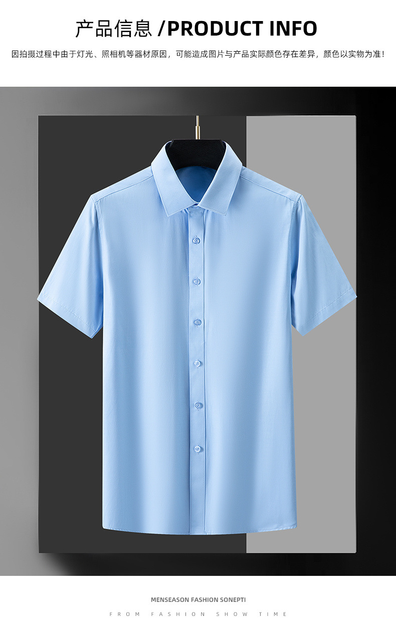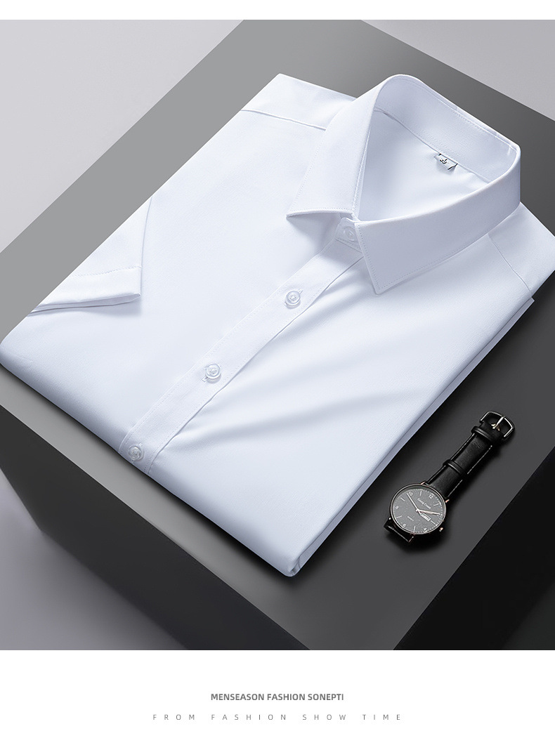 Áo sơ mi công sở lụa băng nam mùa hè 2023 xuân hè mới áo sơ mi trắng ngắn tay bằng sợi tre thông thường cho nam