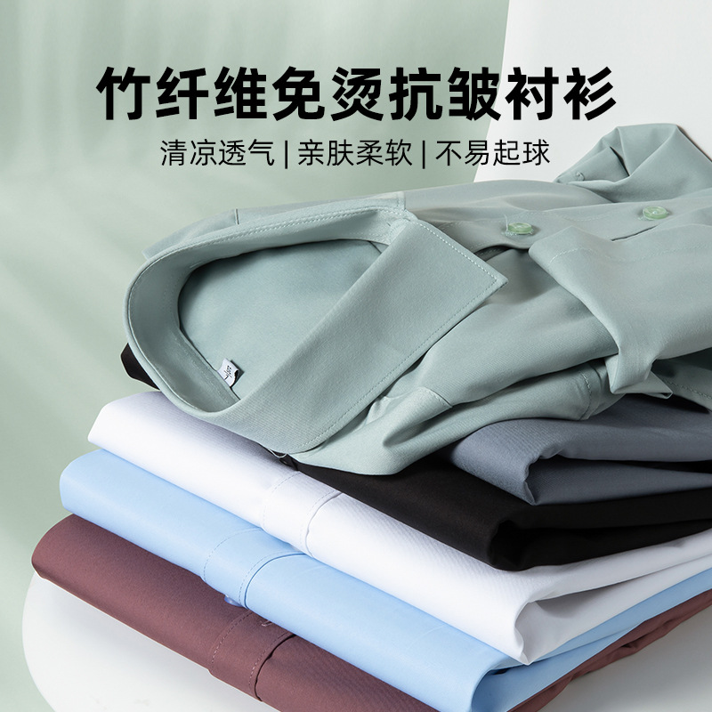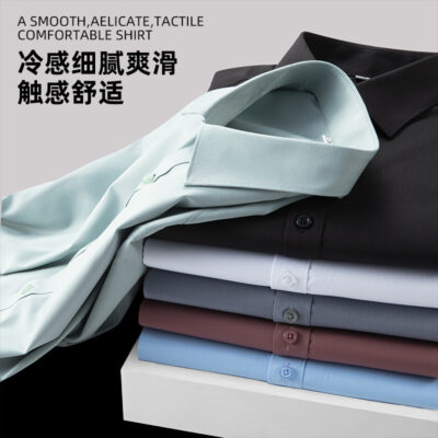 Áo sơ mi công sở lụa băng nam mùa hè 2023 xuân hè mới áo sơ mi trắng ngắn tay bằng sợi tre thông thường cho nam