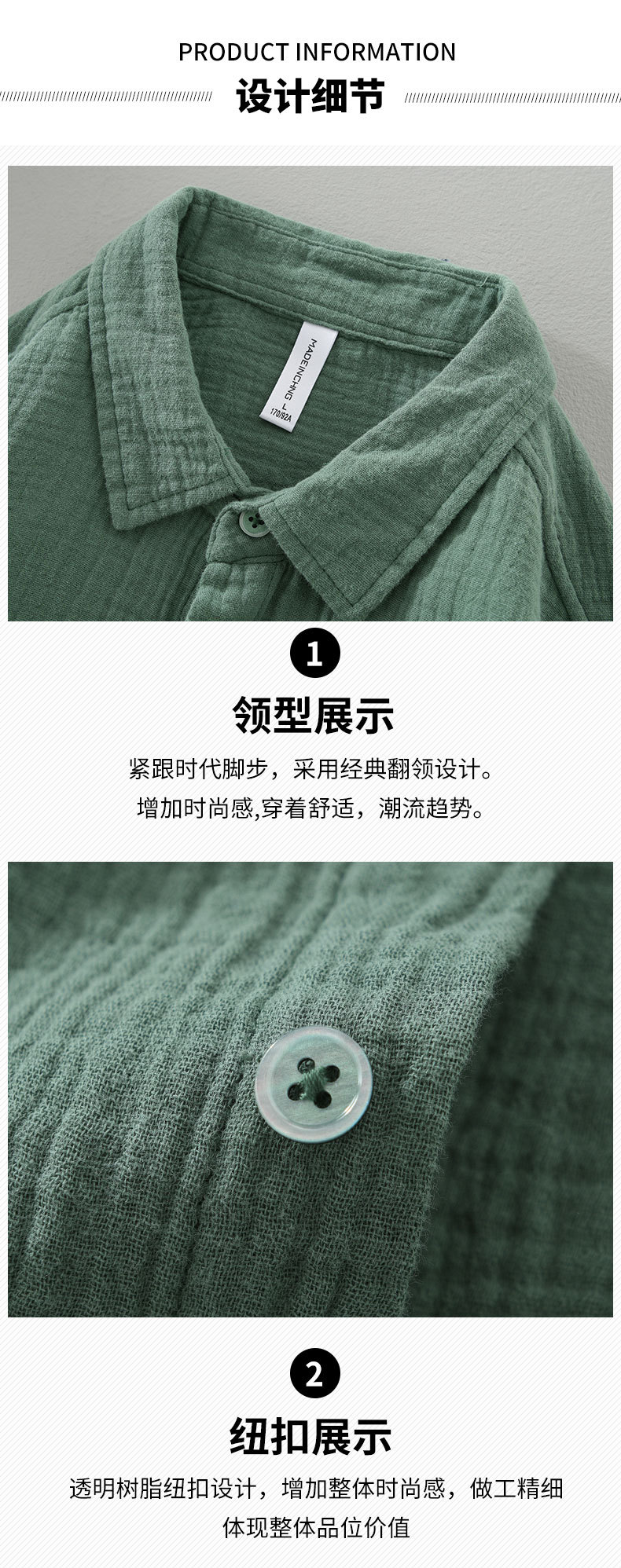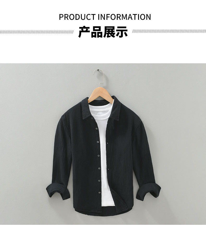 Áo sơ mi cotton hai lớp nam kiểu dáng ôm vừa vặn nhàu nát cotton nguyên chất dài tay áo sơ mi trắng giản dị đẹp trai màu trơn hợp thời trang
