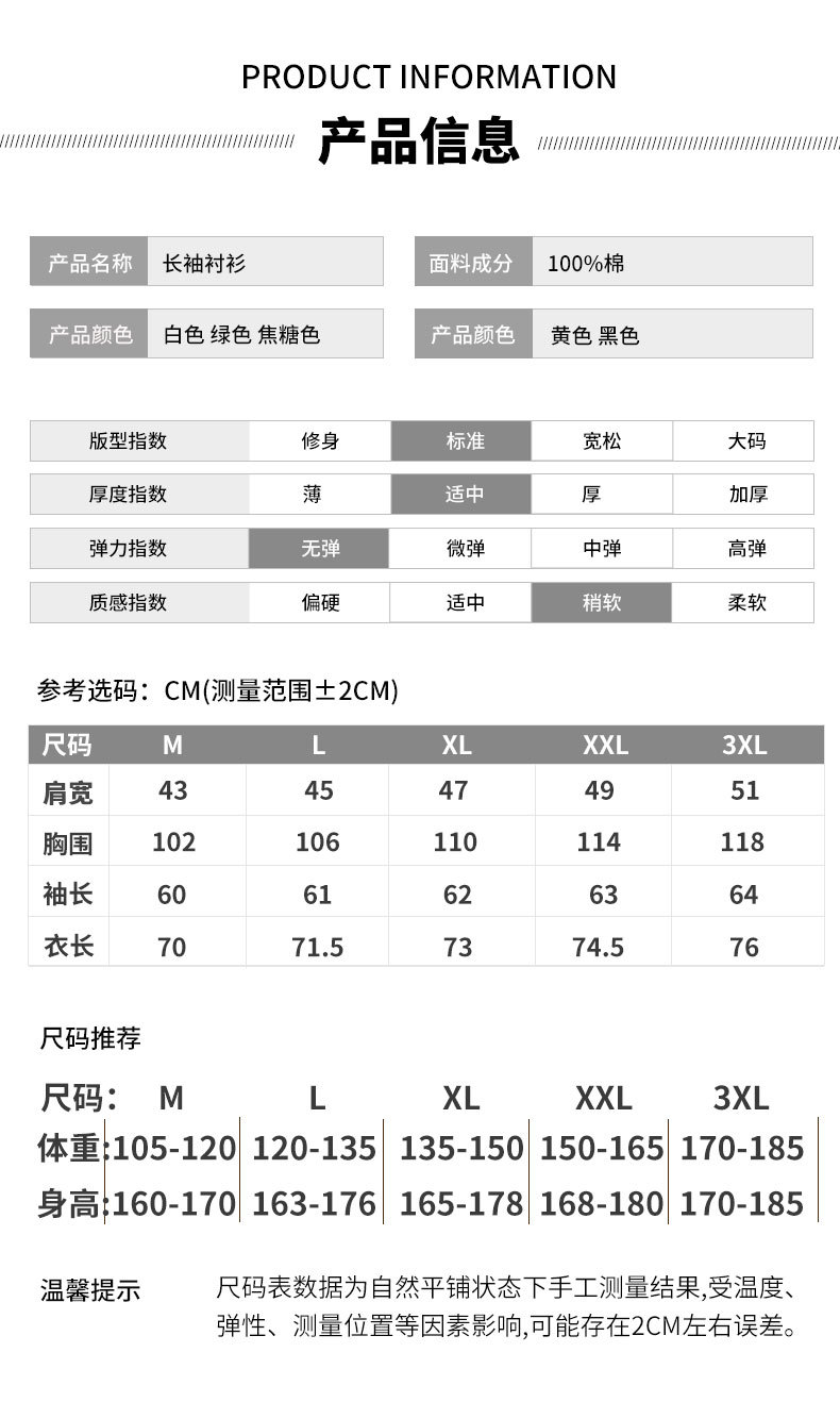 Hoa văn: màu trơn Nguồn Danh mục: Spot Số lượng vải: 100 Chất liệu Chức năng: Có thể giặt bằng máy/Hút ẩm/Khác/Khác Màu sắc: Trắng/Đen/Xanh lá cây/Caramen/Vàng/Vàng Loại sản phẩm: Thành phần của vải chính của áo sơ mi: 100 Hàng tồn kho: Có Có hoặc không có Báo cáo kiểm tra chất lượng: Có Thích hợp cho đám đông: Thanh niên Kích thước: M/L/XL/XXL/XXXL/XXXL Phiên bản: Loại rộng Cổ vuông có dành riêng cho xuất khẩu xuyên biên giới không? /AliExpress/Independent Station/LAZADA/Others/Others đã ủy quyền thương hiệu riêng: Có Giới tính áp dụng: Nam Loại hàng tồn kho: Toàn bộ Đơn hàng Độ tuổi áp dụng: Người lớn Năm/Mùa niêm yết: Mùa xuân 2023 Chiều dài tay áo: Dài tay Mùa phù hợp: Bốn mùa Chi tiết phong cách: Phong cách hàng đầu: Japanese Fresh Khu vực bán hàng chính: Châu Âu/Nam Mỹ/Đông Nam Á/Bắc Mỹ/Đông Bắc Á/Trung Đông/Khác/Khác Phạm vi lỗi: 1-2cm Nguồn thiết kế ban đầu: Có Quy trình: Không
