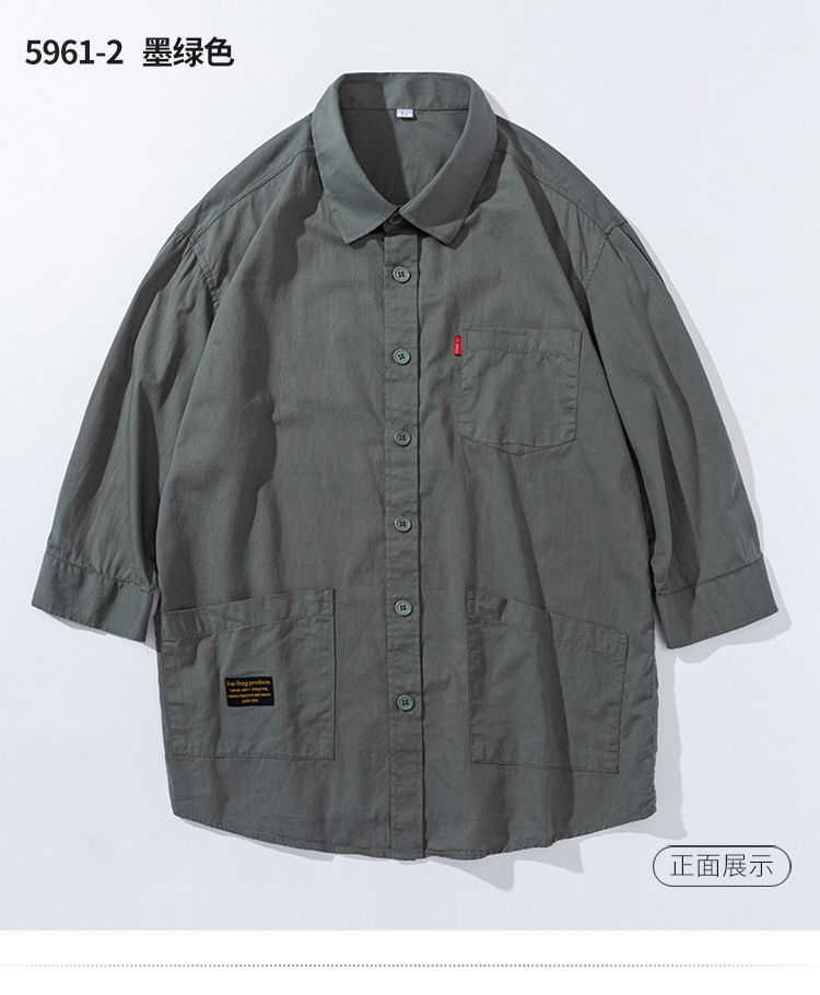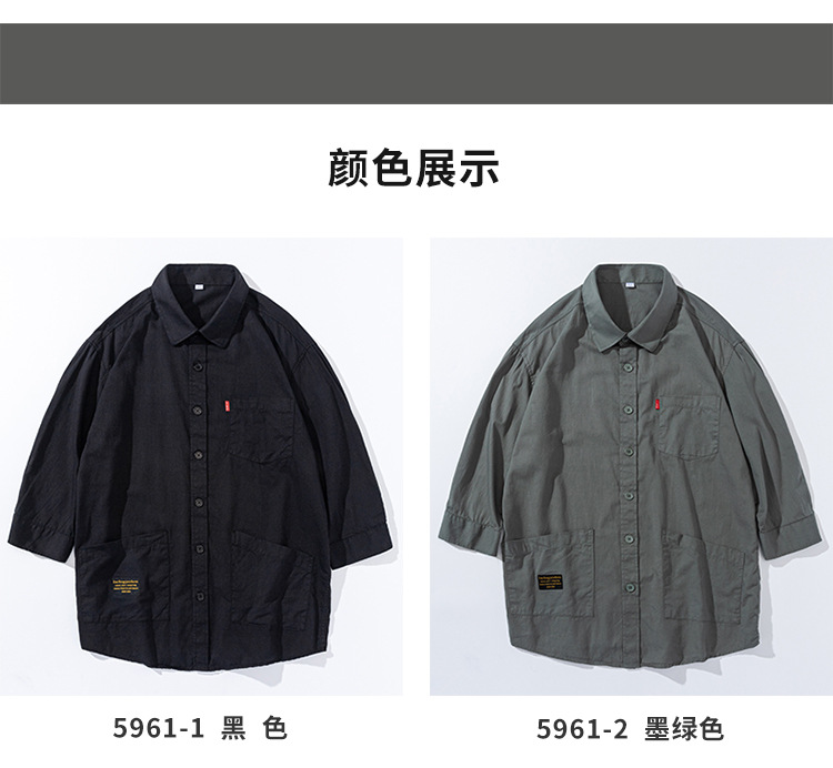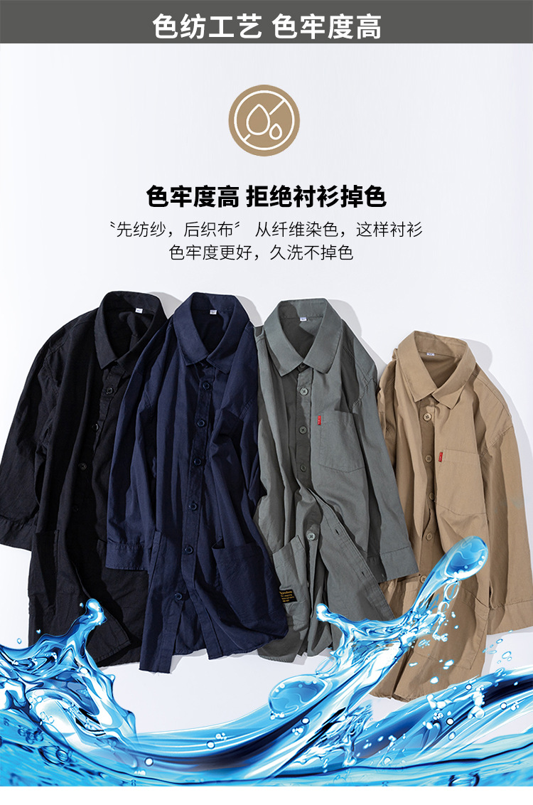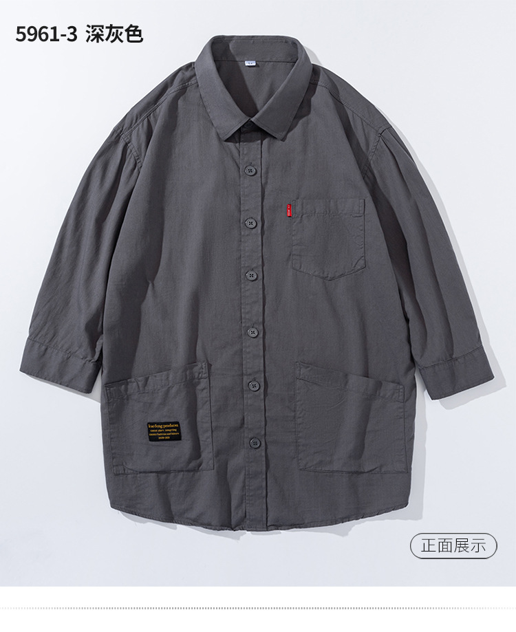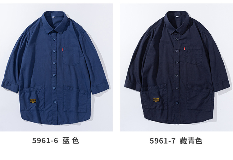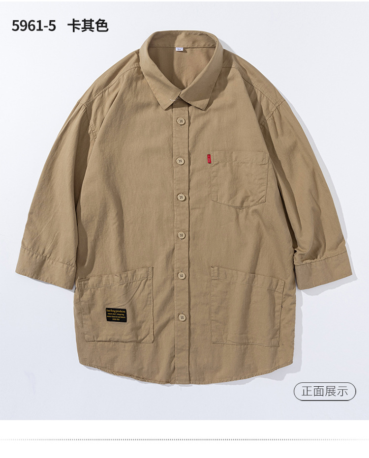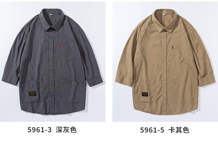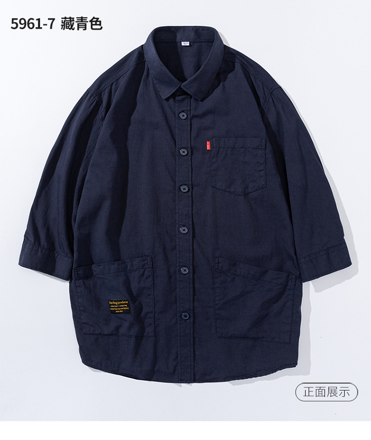 Áo sơ mi cotton nguyên chất mùa xuân và mùa hè cho nam sơ mi rộng tay dài tay áo ba phần tư giản dị của nam được xử lý không ủi cotton nguyên chất tại chỗ