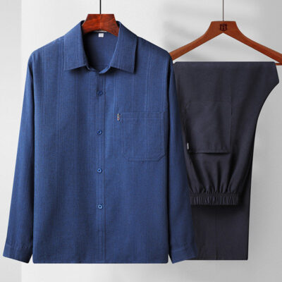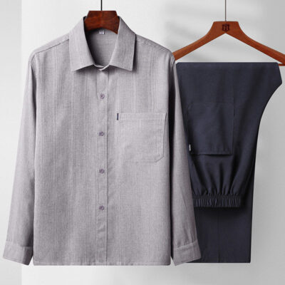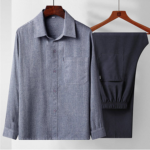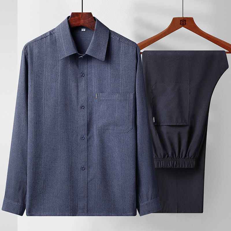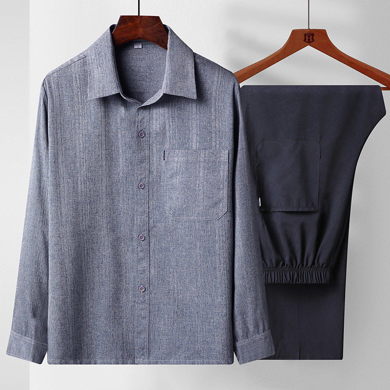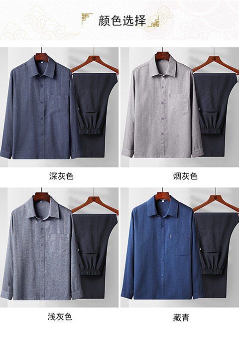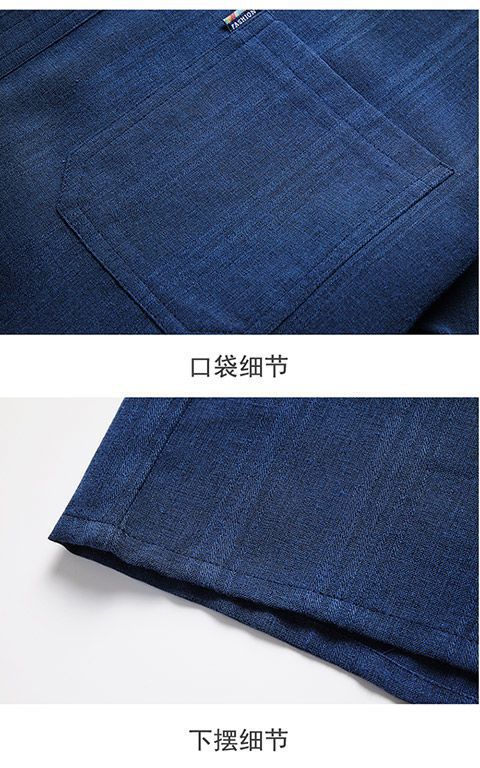 Áo sơ mi cotton và vải lanh dài tay của nam giới trung niên và cao tuổi phù hợp với quần áo của cha mùa xuân và mùa hè ve áo rộng cỡ lớn quần áo của ông nội