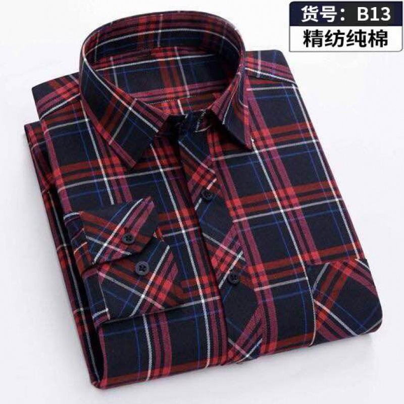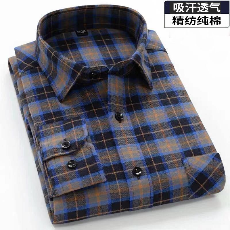 Áo sơ mi dài tay dành cho người trung niên và người cao tuổi, áo sơ mi nam kẻ sọc công sở cỡ lớn của bố, cotton giản dị, mùa thu và mùa hè