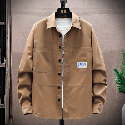 Áo sơ mi denim công cụ thương mại nước ngoài châu Âu và Mỹ đơn giản và linh hoạt đã giặt sơ mi nam dài tay có đáy giản dị hàng đầu