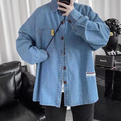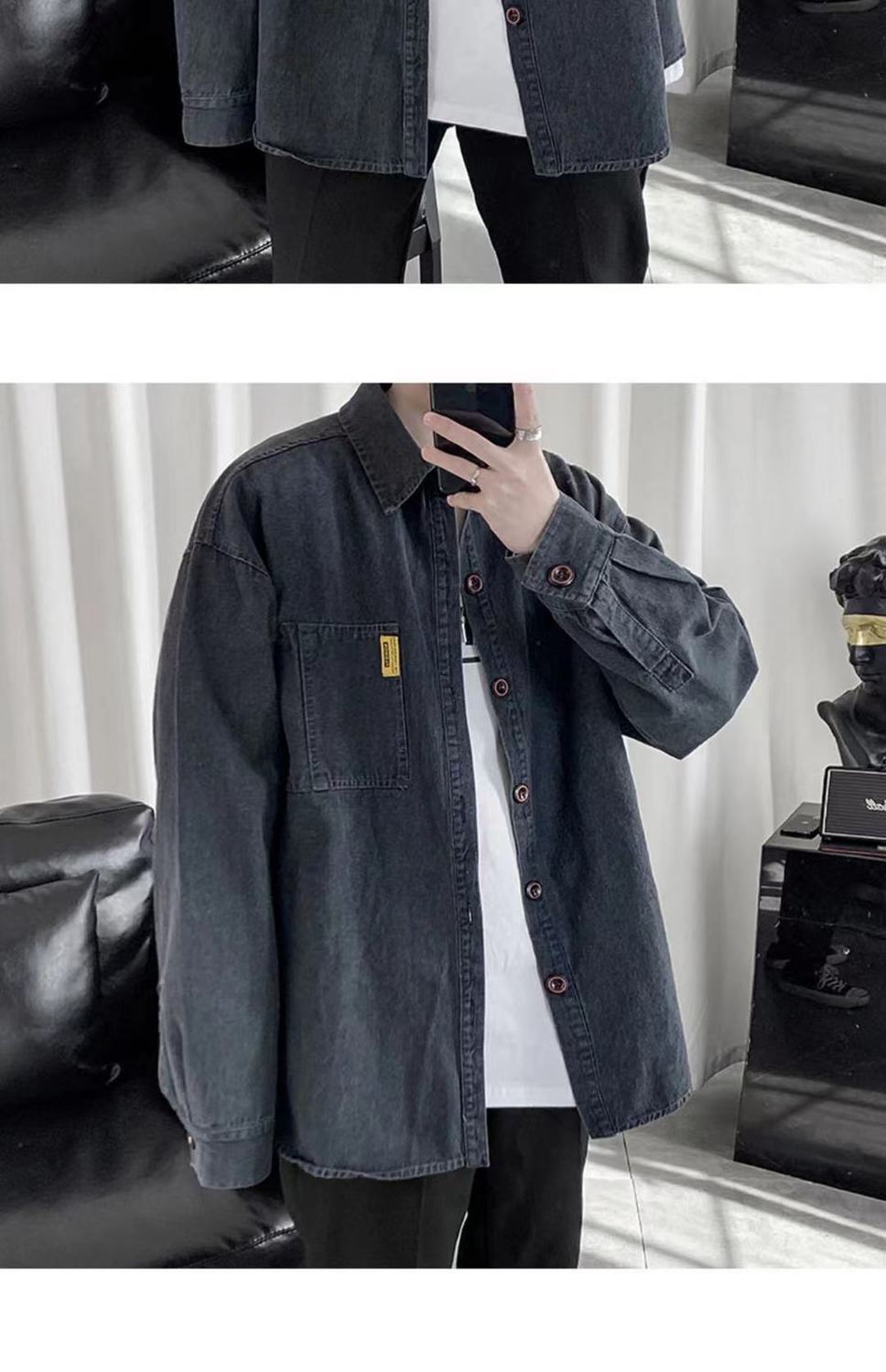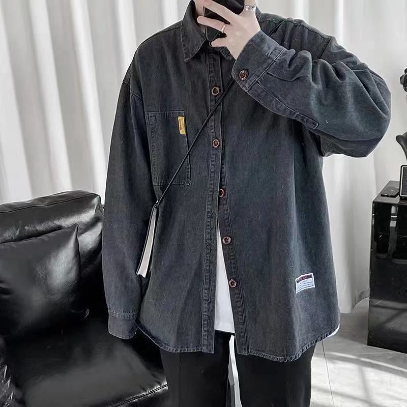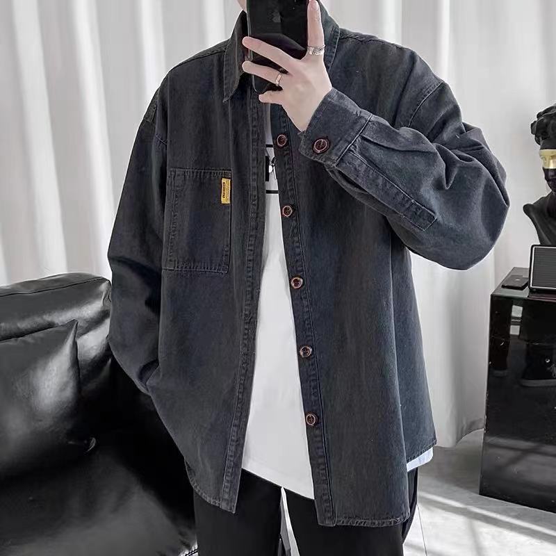 Áo sơ mi denim nam dài tay rộng rãi cộng với kích thước cộng với chất béo cộng với quần áo hợp thời trang mùa xuân và mùa thu áo khoác nam phong cách Hàn Quốc mới