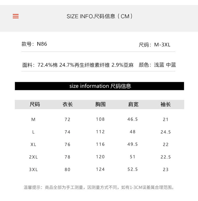 Hoa văn: màu trơn Nguồn Danh mục: Spot Vải Số lượng: 50 Chất liệu Chức năng: Khác Màu sắc: N86-Xanh nhạt/N86-Xanh vừa/N87-Xanh nhạt/N87-Xanh đậm/N88-Xanh nhạt/N88-Xanh vừa/N88- Danh mục sản phẩm Zhonglan: áo sơ mi Hàm lượng vải chính: 72.4 Hàng tồn kho: có hoặc không Báo cáo kiểm tra chất lượng: không phù hợp với đối tượng: thanh thiếu niên Kích thước: M/L/XL/2XL/3XL/3XL Phiên bản: loại rộng Danh mục mua sắm: Thời trang trẻ (18 -24 tuổi) Loại cổ áo: Ve áo Tùy chỉnh: Có thể tùy chỉnh để in logo thêu Cho dù cung cấp độc quyền xuất khẩu xuyên biên giới: Có Phong cách: Cardigan Độ dày: Mỏng Thương hiệu: Yunzhongwolf Mã số mặt hàng: 456-N86 Tên vải: Cotton pha Các tình huống áp dụng: Thông thường Thành phần vải chính: Bông Số báo cáo kiểm tra chất lượng: 0 Các nền tảng hạ nguồn chính: ebay/Amazon/wish/AliExpress/Independent Station/LAZADA/LAZADA đã được ủy quyền Thương hiệu riêng: Không áp dụng Giới tính: Nam Loại hàng tồn kho: Toàn bộ đơn hàng Nhóm tuổi áp dụng: Người lớn Năm/Mùa được liệt kê: Mùa hè 2023 Chiều dài tay áo: Tay áo ngắn Mùa thích hợp: Mùa hè Chi tiết phong cách: Topstitch Thành phần: 72,4 Cotton 24,7 Sợi Cellulose tái sinh 2,9 Vải lanh (Chứa dấu vết của các loại sợi khác) Phong cách: Công cụ Nhật Bản Khu vực bán hàng chính: Châu Phi/Châu Âu/Nam Châu Mỹ/Đông Nam Á/Bắc Mỹ/Đông Bắc Á/Trung Đông/Trung Đông Phạm vi sai số: 0,2cm Nguồn thiết kế ban đầu: Có Quy trình: Không