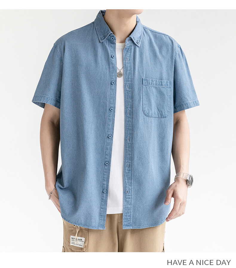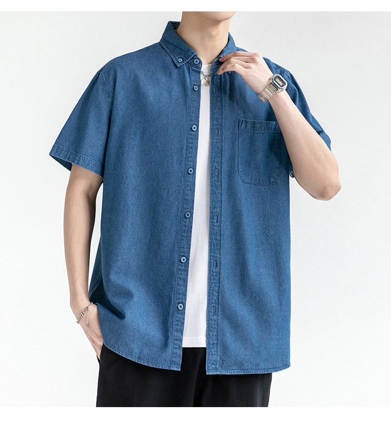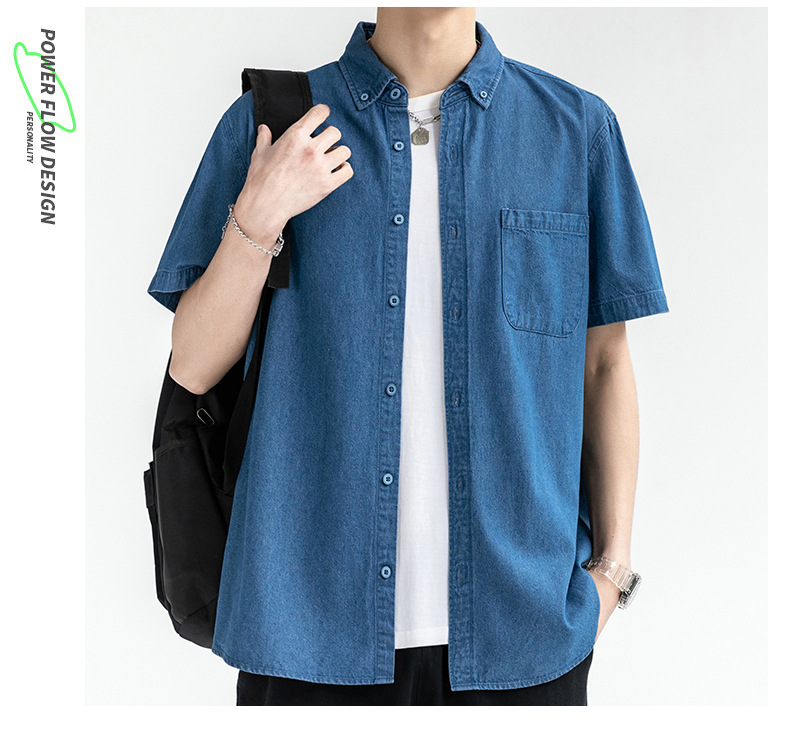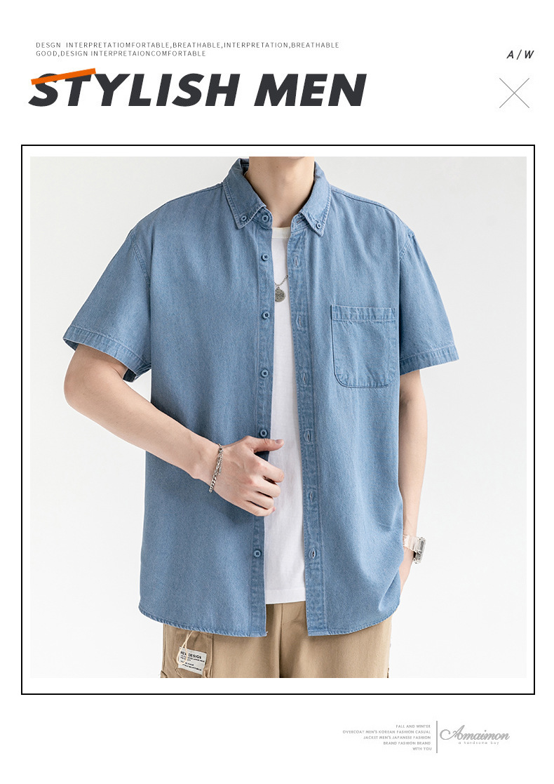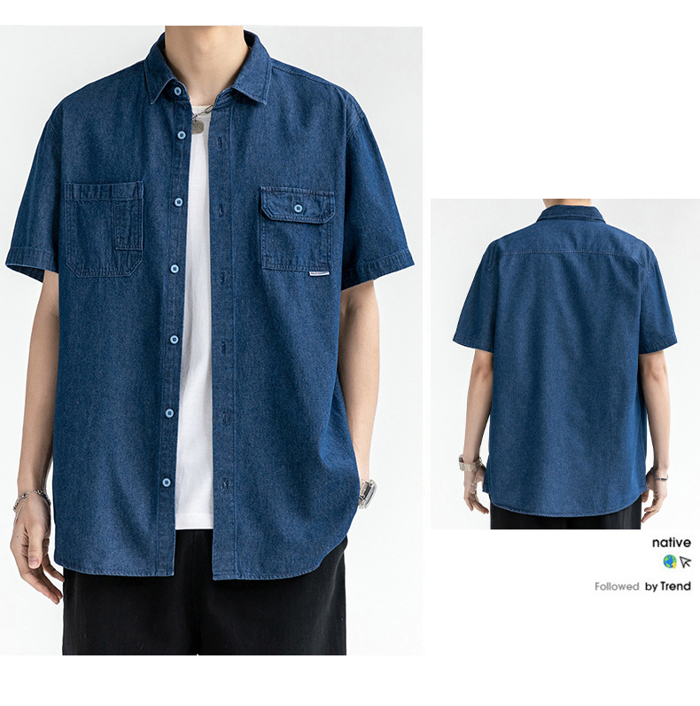 Áo sơ mi denim ngắn tay nam xu hướng áo khoác Nhật Bản ins áo sơ mi học sinh mùa hè 2023 phong cách mới