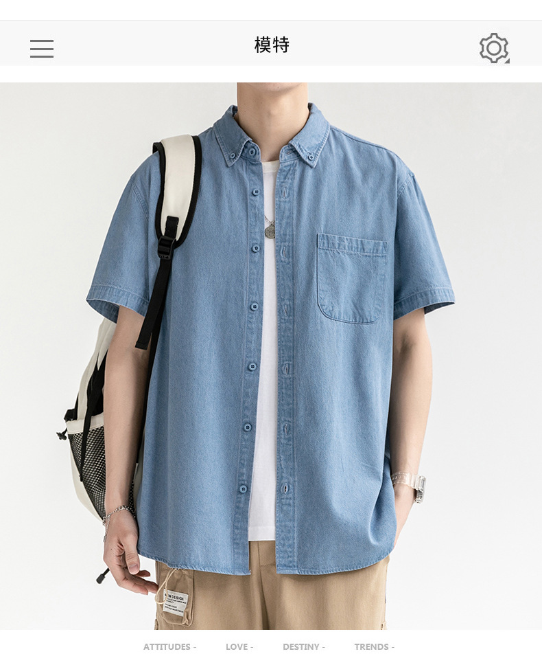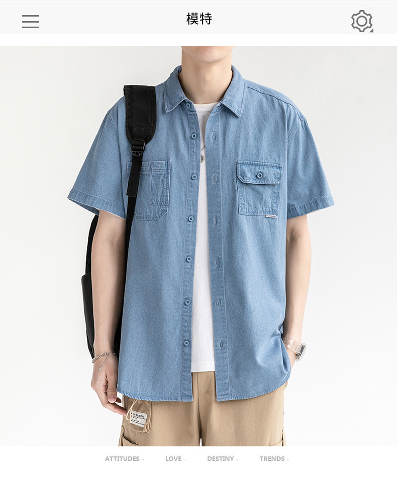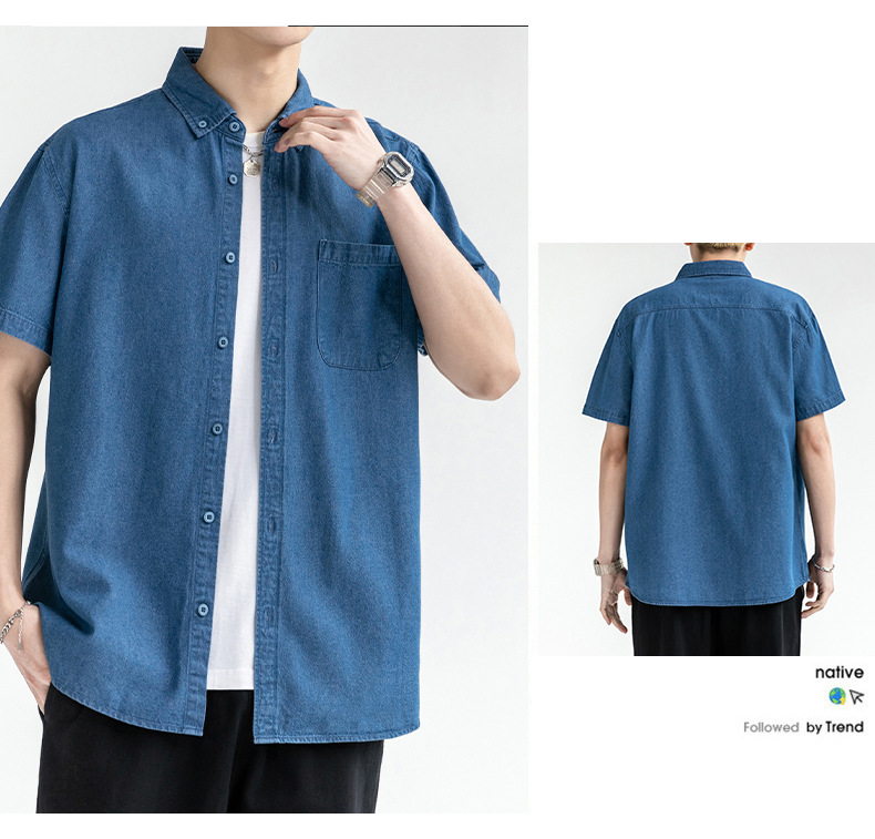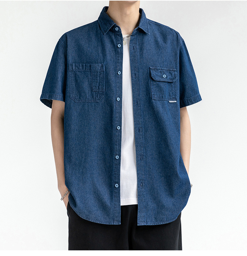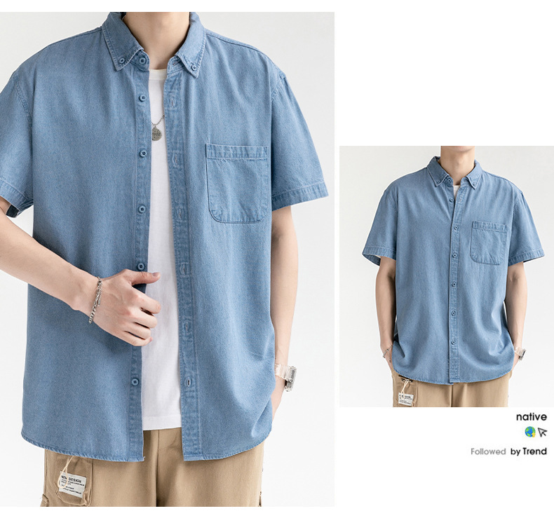 Áo sơ mi denim ngắn tay nam xu hướng áo khoác Nhật Bản ins áo sơ mi học sinh mùa hè 2023 phong cách mới