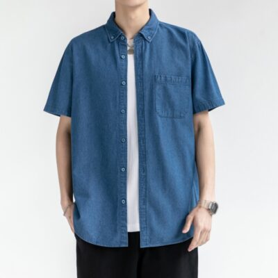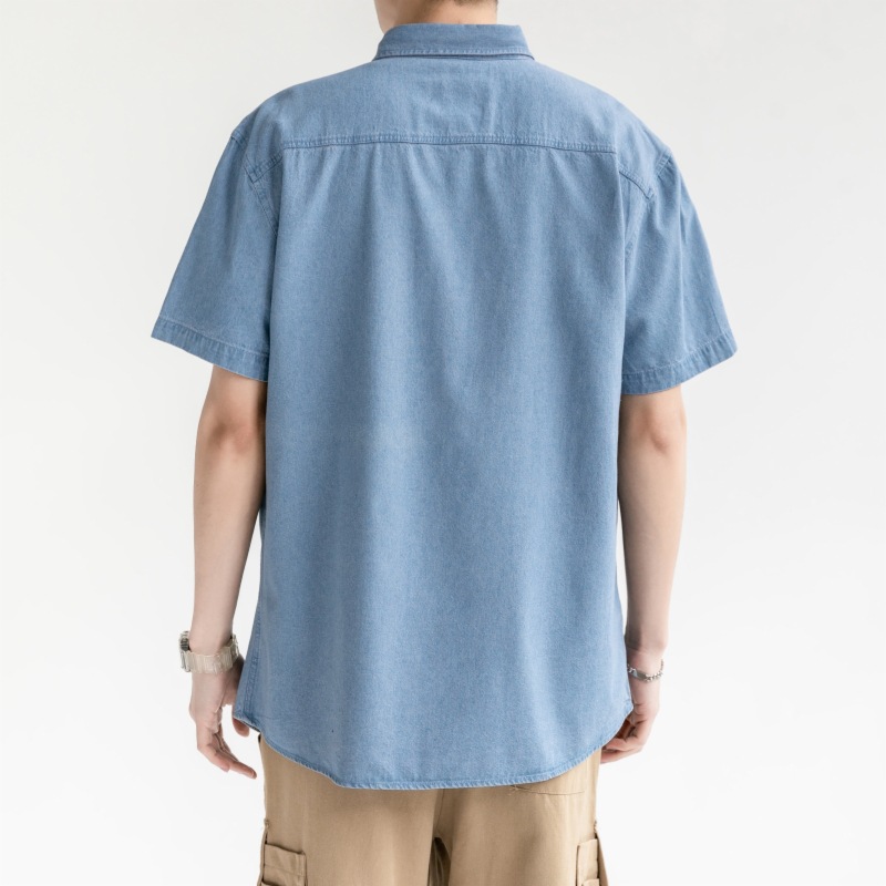 Áo sơ mi denim ngắn tay nam xu hướng áo khoác Nhật Bản ins áo sơ mi học sinh mùa hè 2023 phong cách mới