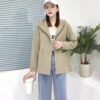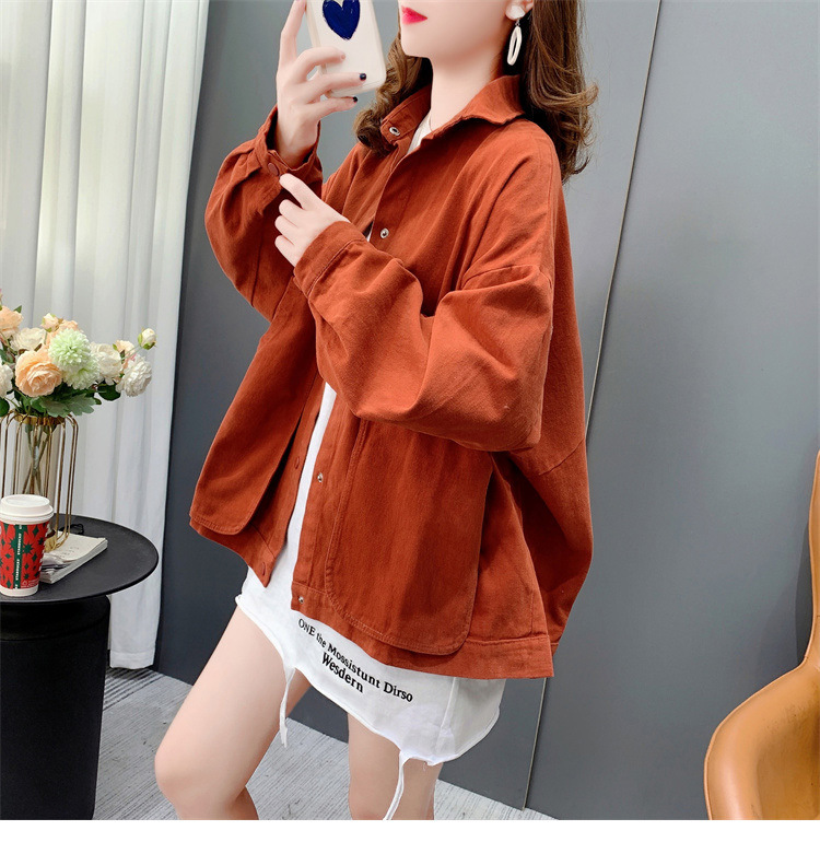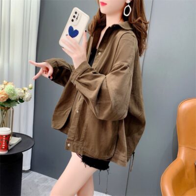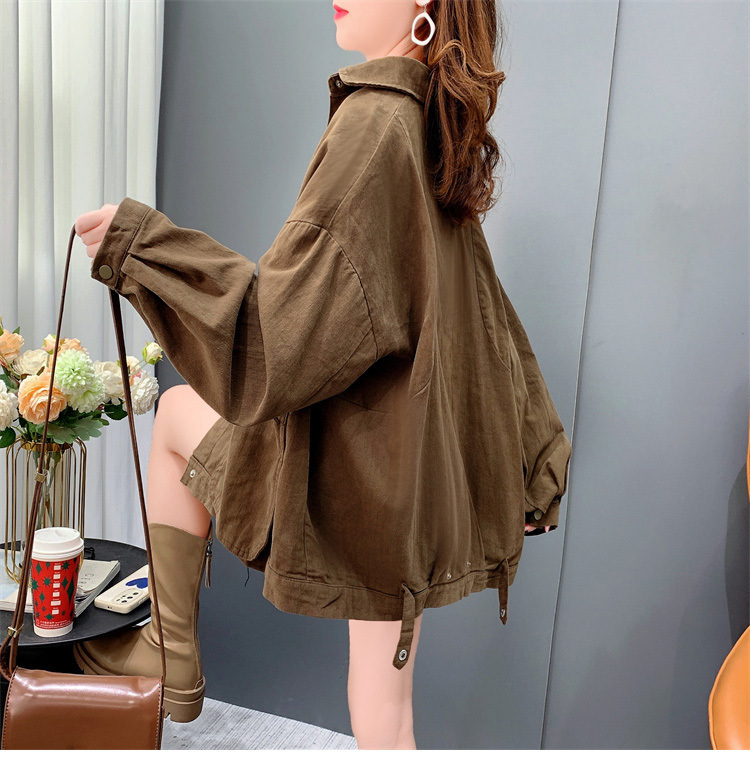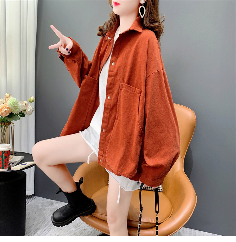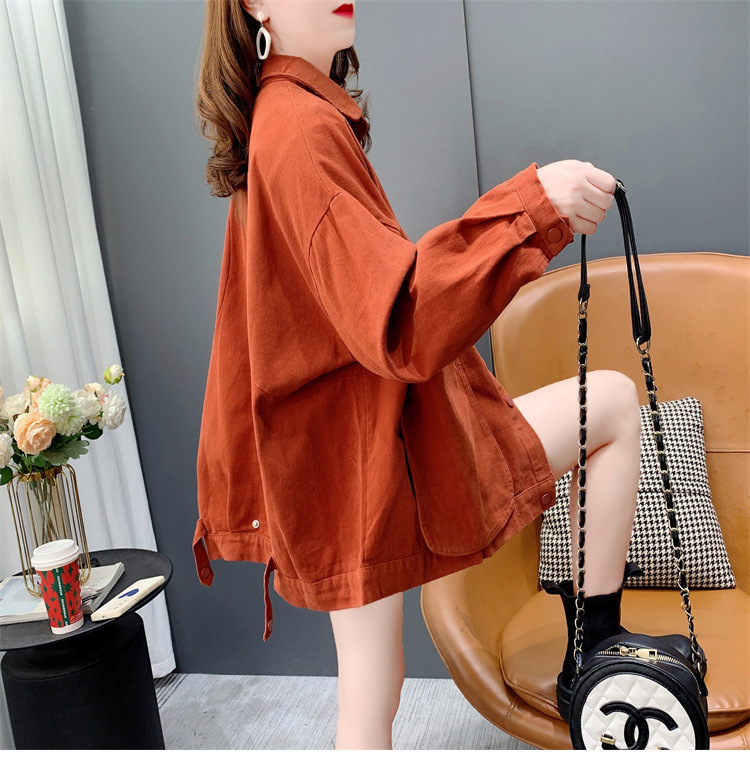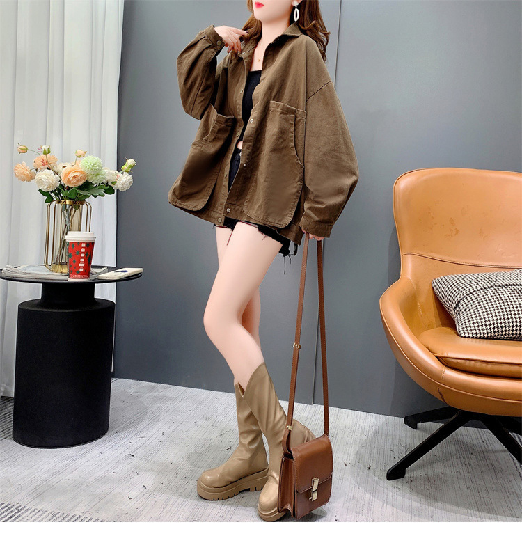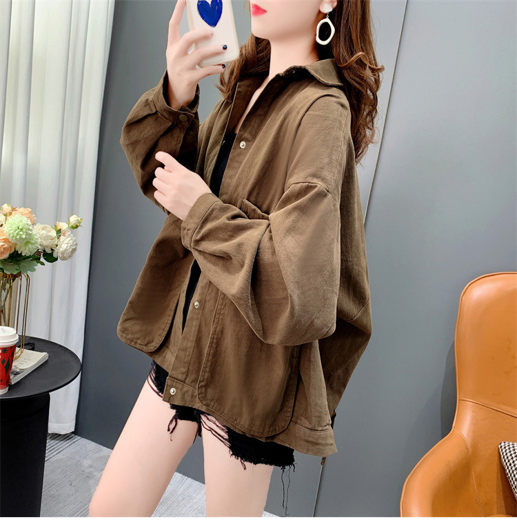 Áo sơ mi denim ngắn túi lớn áo khoác nữ mùa thu 2023 mới dáng rộng lười gió áo khoác đa năng