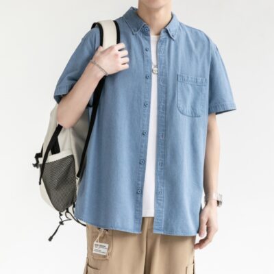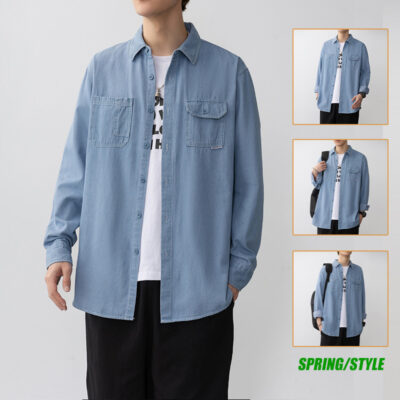 Áo Sơ Mi Denim Tay Dài Nam Đẹp Trai Retro Dụng Cụ Sơ Mi Phần Mỏng Nhật Bản Giản Dị Áo Khoác Denim Nam Hợp Thời Trang