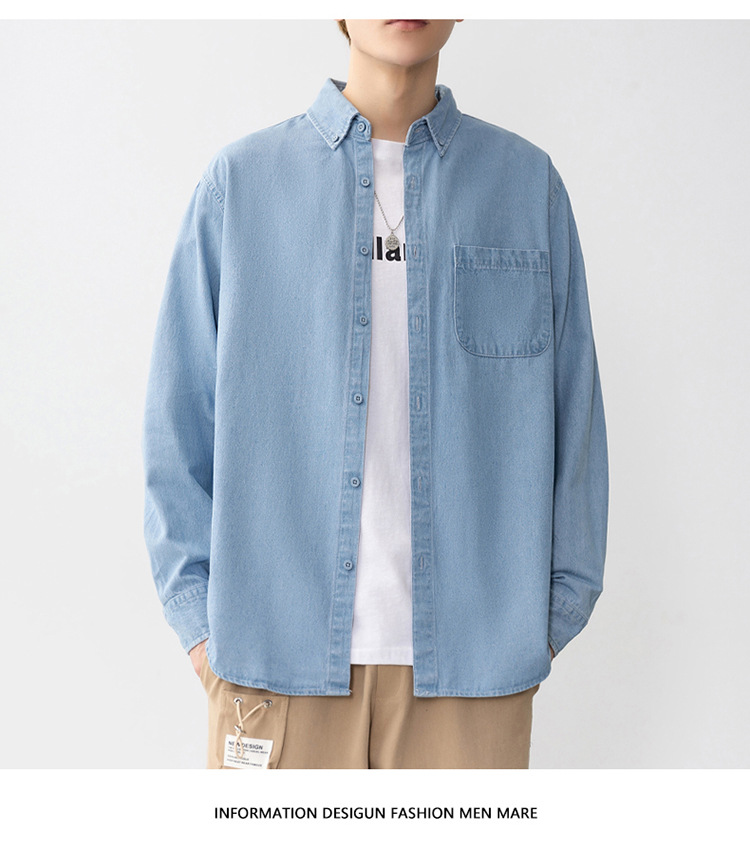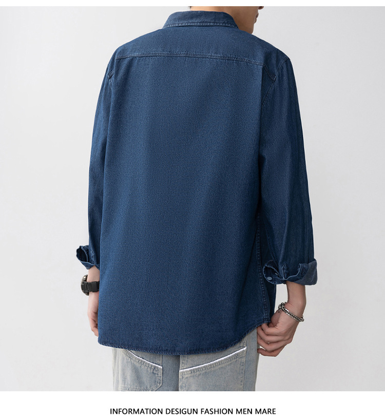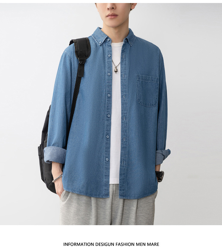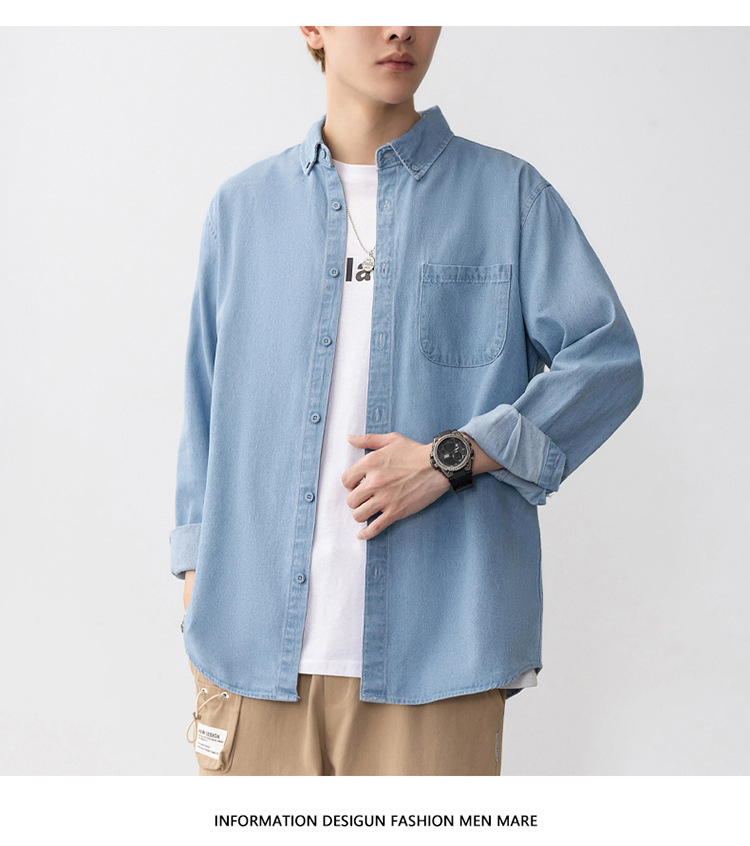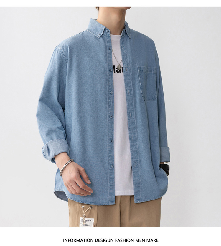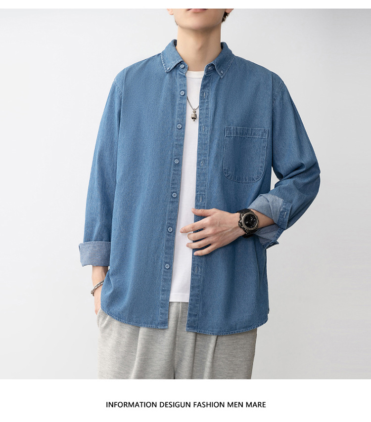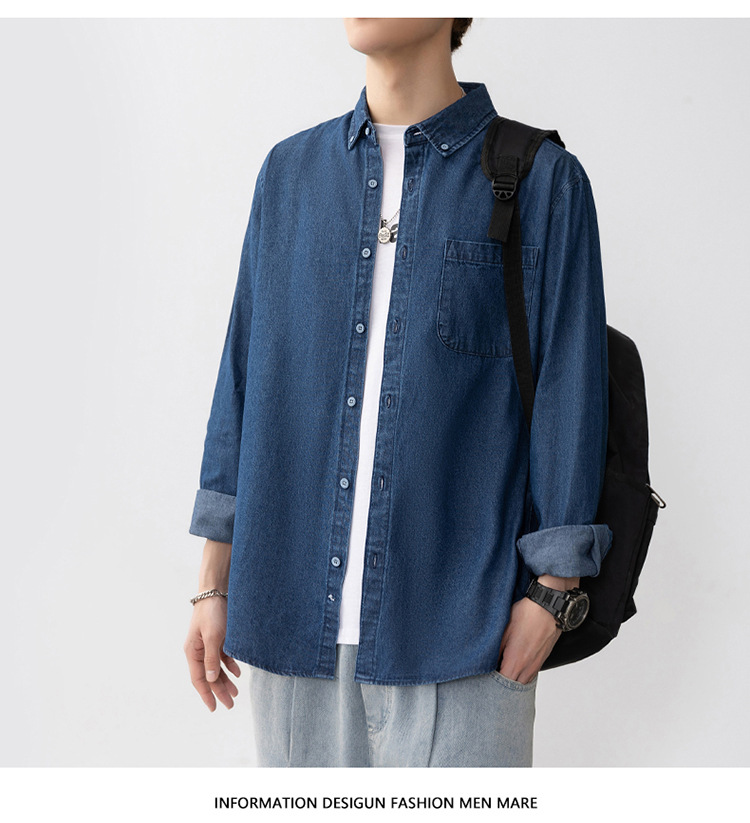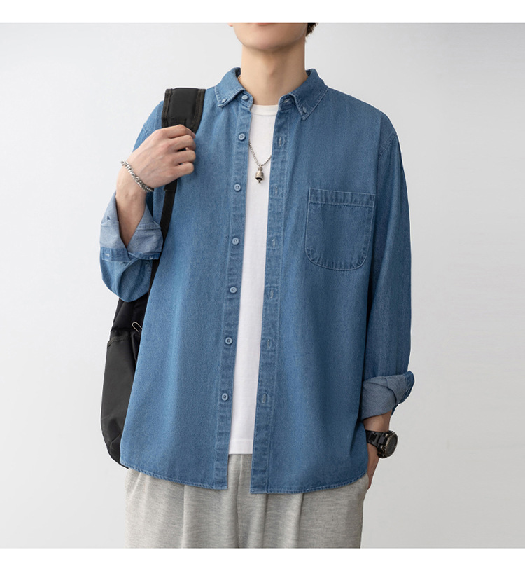 Áo Sơ Mi Denim Tay Dài Nam Đẹp Trai Retro Dụng Cụ Sơ Mi Phần Mỏng Nhật Bản Giản Dị Áo Khoác Denim Nam Hợp Thời Trang