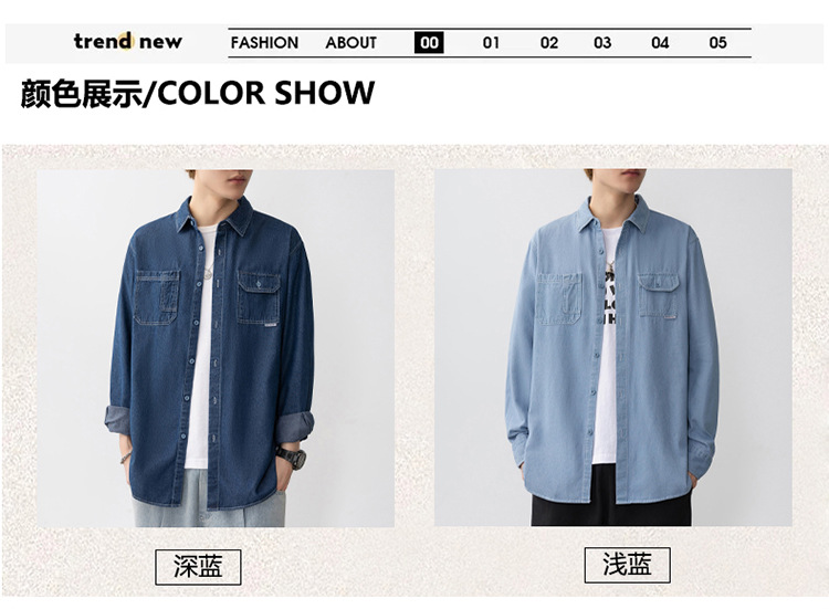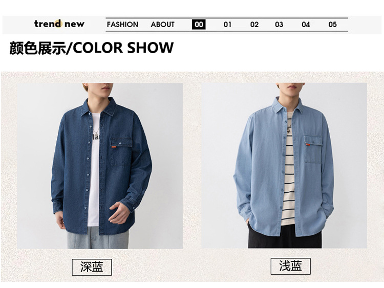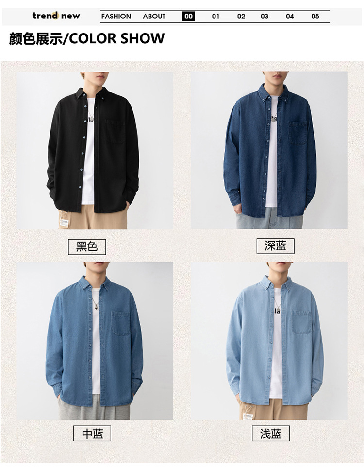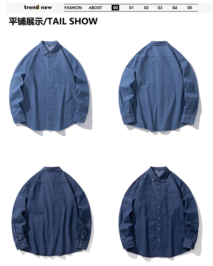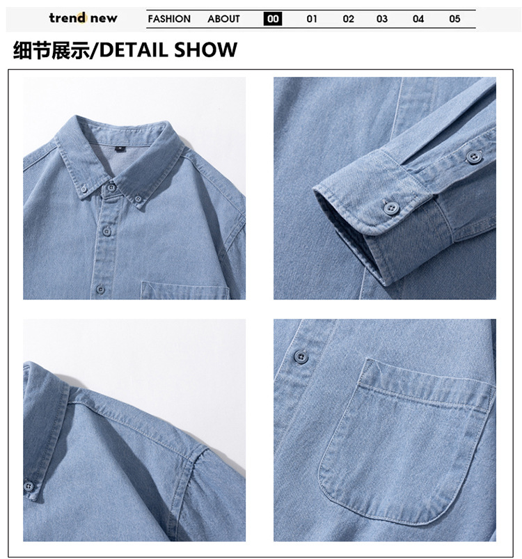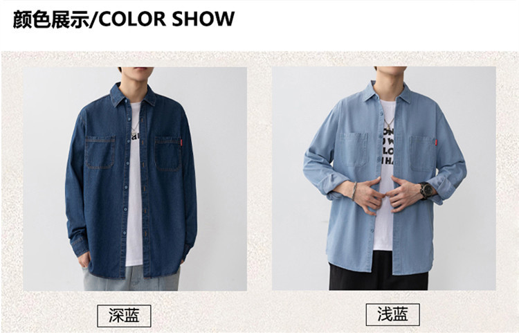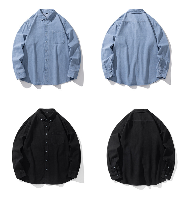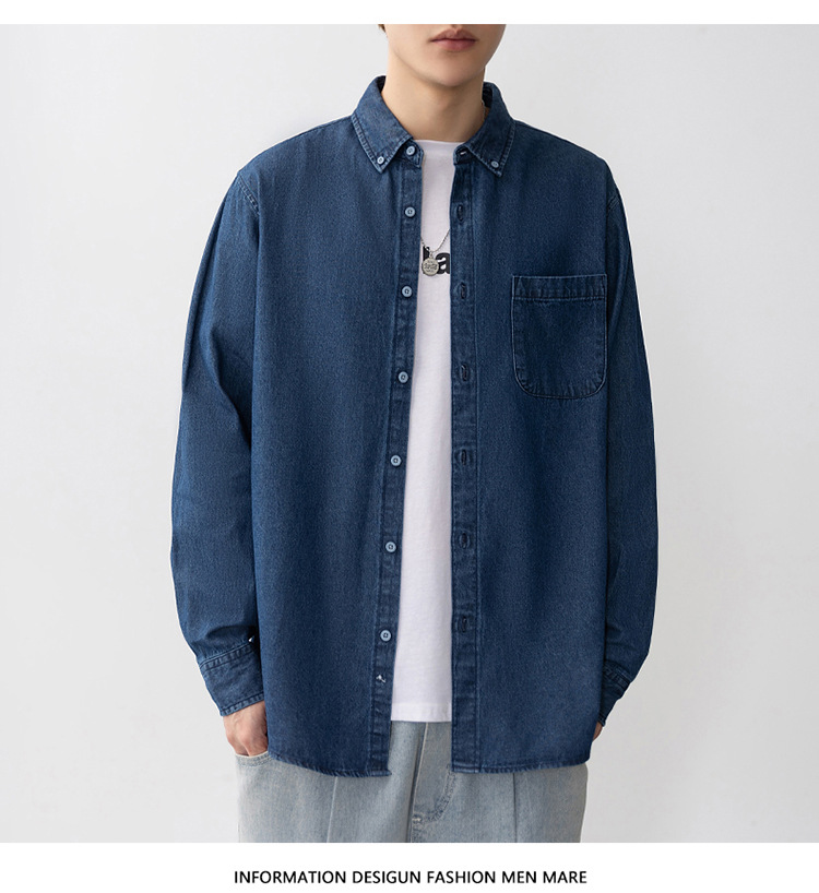 Áo Sơ Mi Denim Tay Dài Nam Đẹp Trai Retro Dụng Cụ Sơ Mi Phần Mỏng Nhật Bản Giản Dị Áo Khoác Denim Nam Hợp Thời Trang