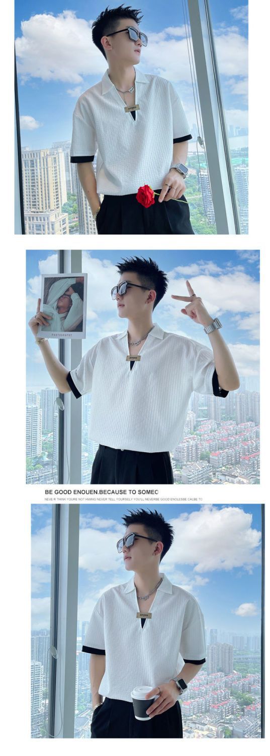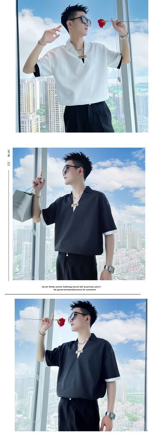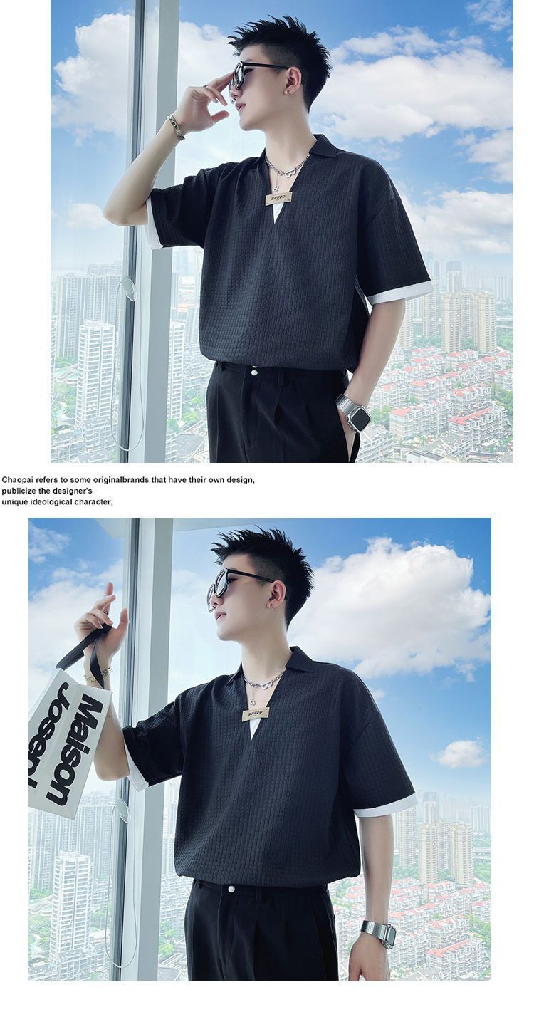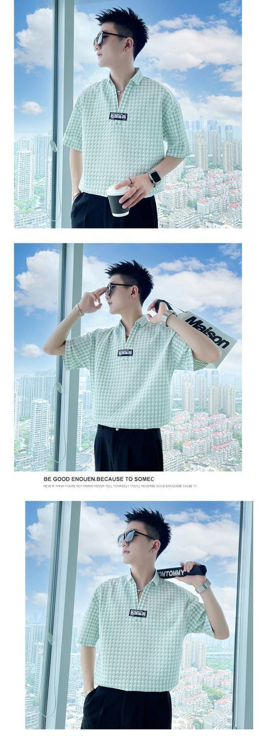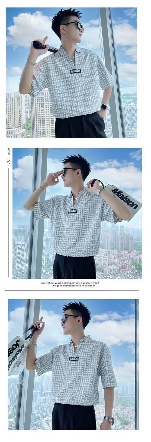 Áo sơ mi hoa ngắn tay mùa hè nhà tạo mẫu tóc nam thương hiệu hợp thời trang ins ruffian đẹp trai áo sơ mi tay ba phần tư ice lụa lưới áo thun đỏ