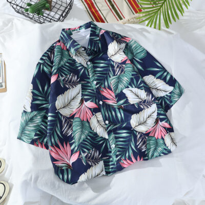 Áo sơ mi hoa ngắn tay phong cách Hồng Kông sang trọng cho nam cỡ lớn, đi biển Hawaii, cặp đôi, áo sơ mi hoa phong cách retro