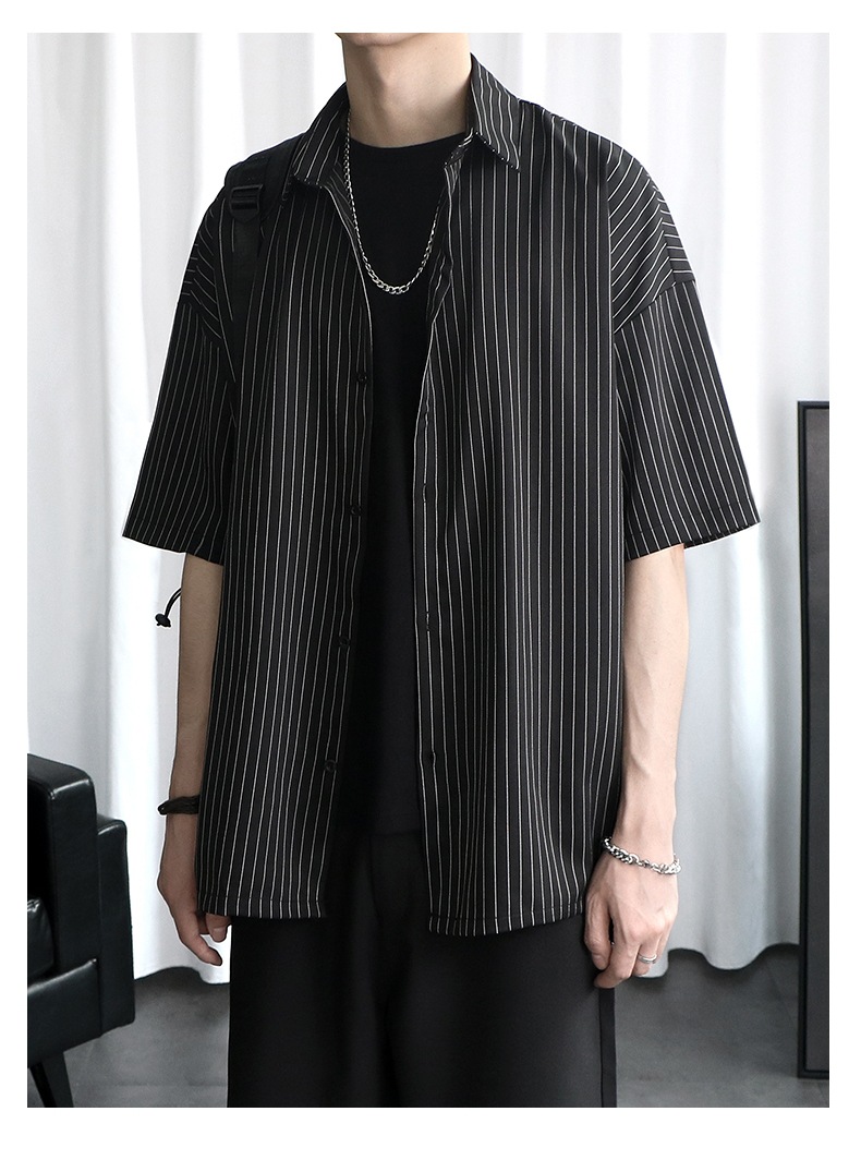 Áo sơ mi kẻ sọc mùa hè áo khoác nam phong cách Hồng Kông Nhật Bản quần áo phóng khoáng phiên bản Hàn Quốc xu hướng áo sơ mi nam ngắn tay mùa hè