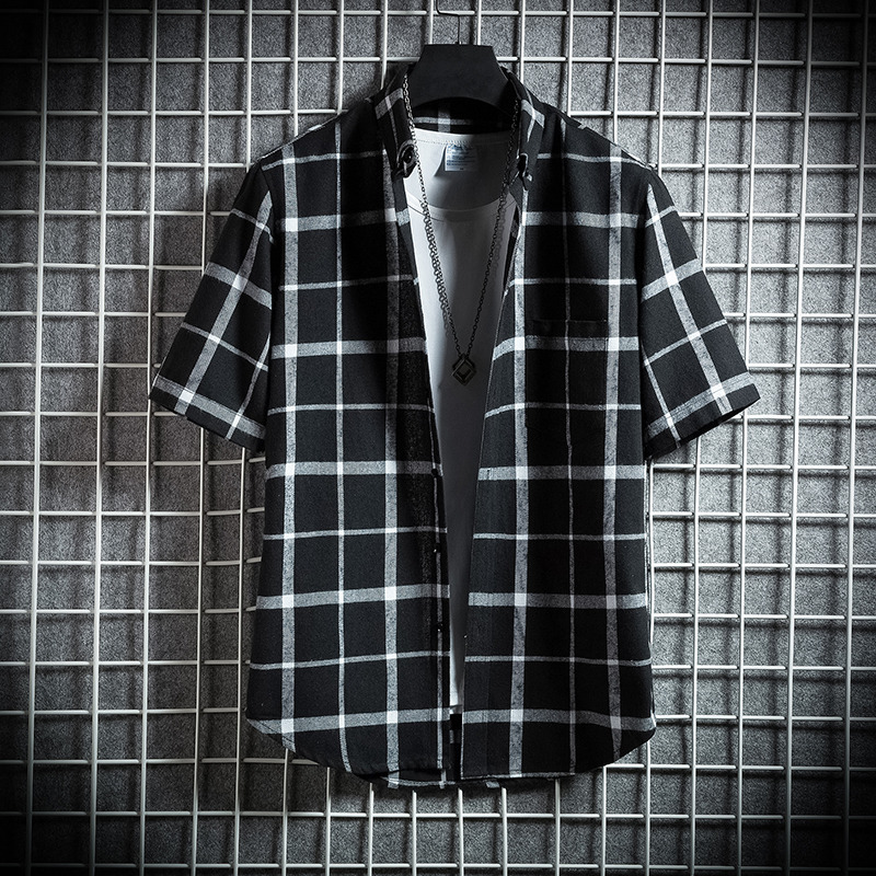 Áo sơ mi kẻ sọc mùa hè nam ngắn tay dáng rộng phiên bản Hàn Quốc đẹp trai hợp thời trang ins áo khoác cặp đôi áo sơ mi giản dị