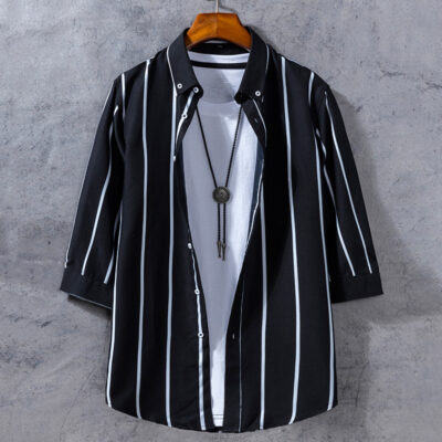 Áo sơ mi một inch nam sinh in thời trang áo sơ mi ngắn tay phong cách Hàn Quốc đẹp trai sọc ba phần tư tay hợp thời trang thương hiệu nhà sản xuất dropshipping