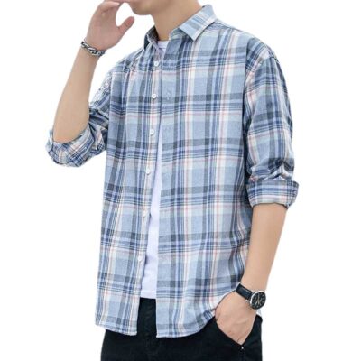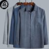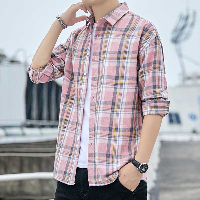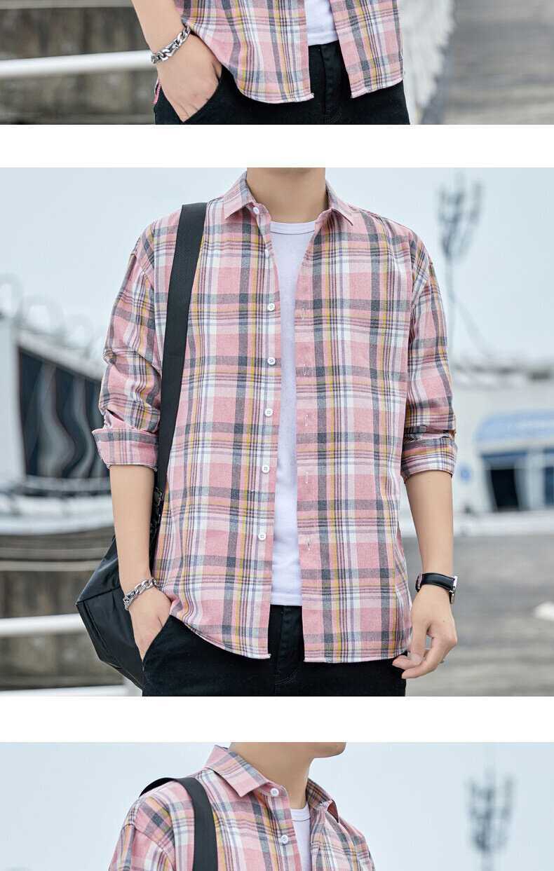Áo sơ mi nam 2022 áo sơ mi kẻ sọc dài tay mùa xuân mới mùa xuân và mùa thu phong cách Hồng Kông áo sơ mi mùa hè phong cách Nhật Bản